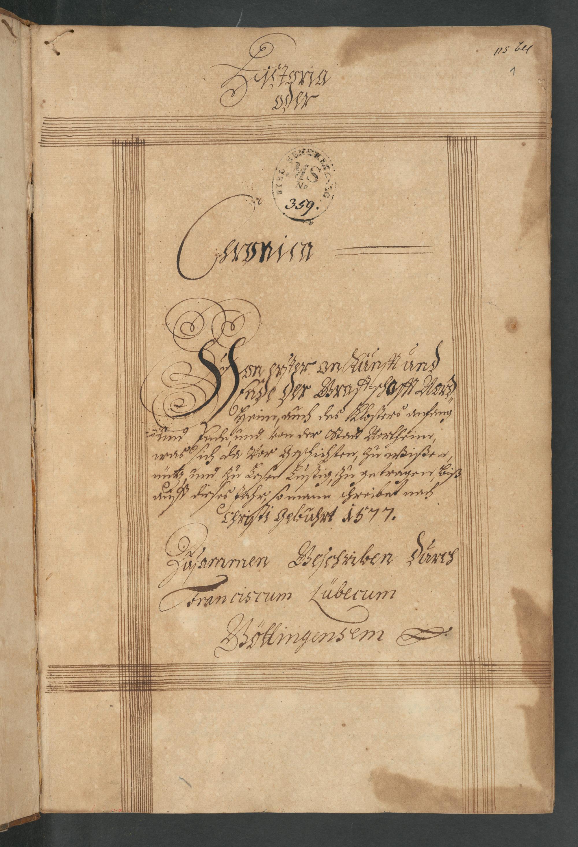 UB Gießen, Hs 507 - Historia oder Chronica von erster Ankunfft und Ende der Grafschaft Nordheim ... bis auff dieses Jahr so mann schreibet nach Christi Geburt 1577. - UB Gießen, Hs 507 / Franz Lübeck