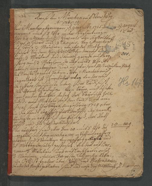 UB Gießen, Hs 167 - Reise von München auf Strassburg. A. 1725 et 1726. - UB Gießen, Hs 167