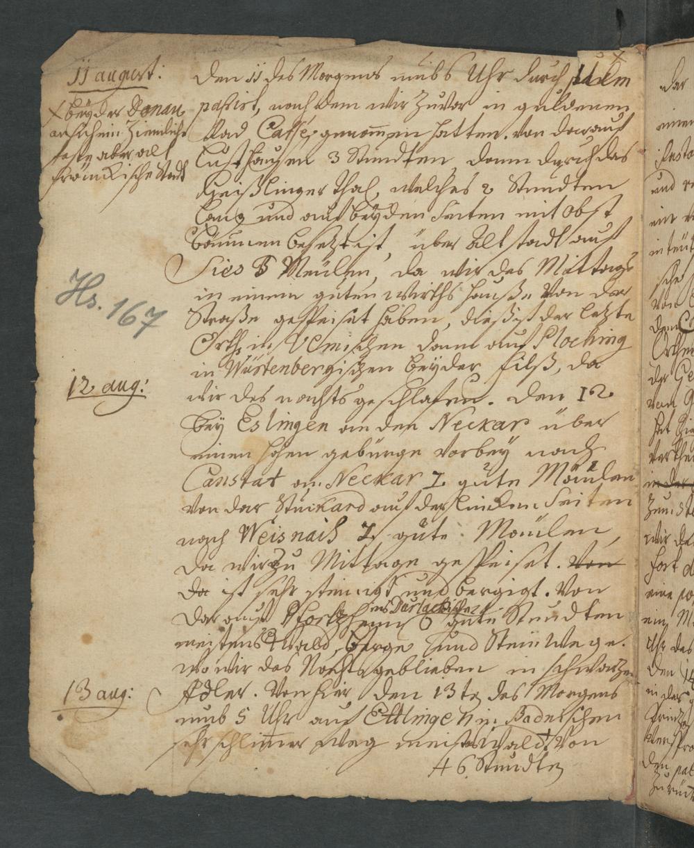 UB Gießen, Hs 167 - Reise von München auf Strassburg. A. 1725 et 1726. - UB Gießen, Hs 167 / [Heinrich Christian von Senckenberg]