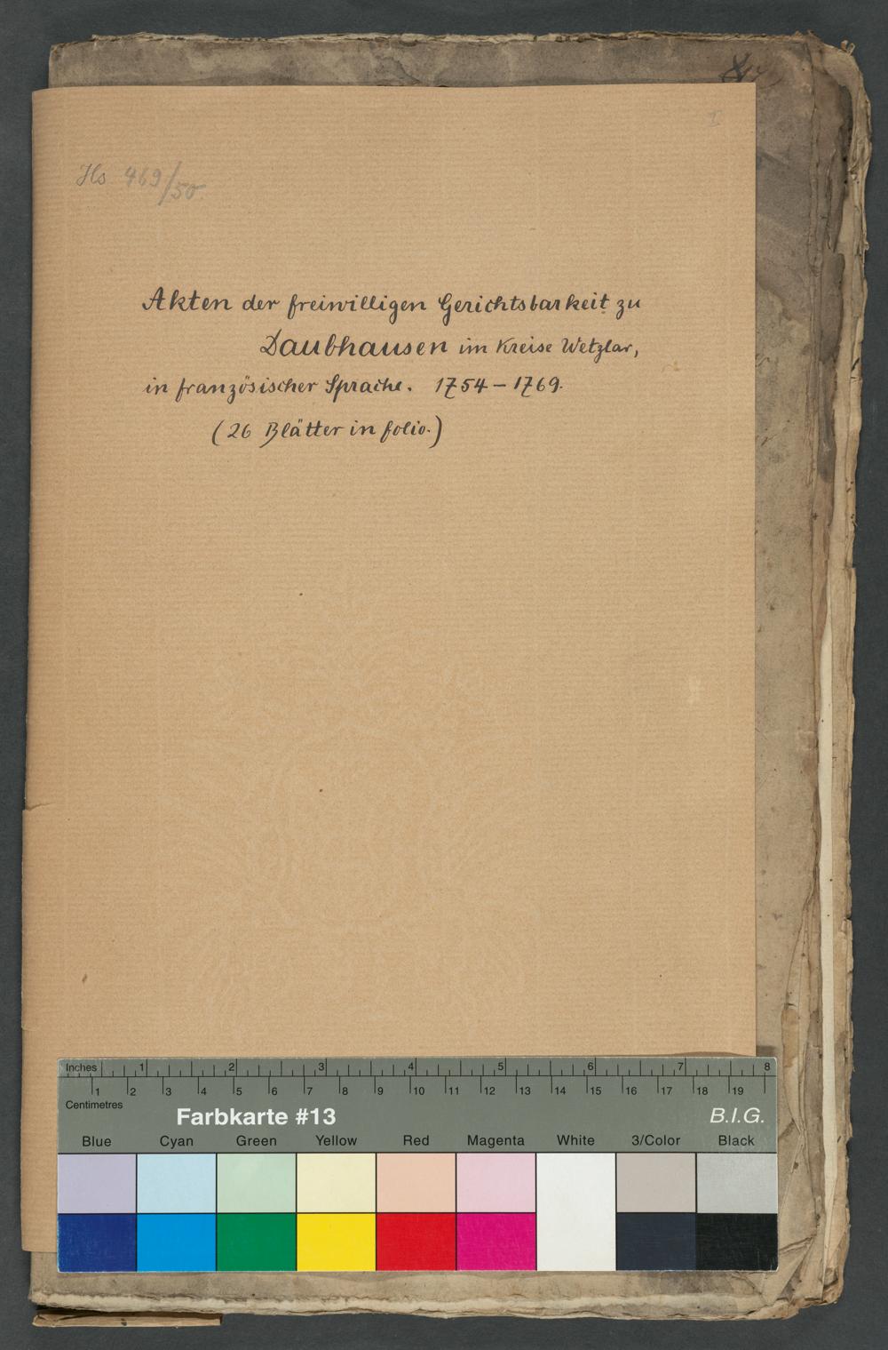 UB Gießen, Hs 469/50 - Akten der freiwilligen Gerichtsbarkeit zu Daubhausen im Kreis Wetzlar, in franzöischer Sprache : 1754-1769. - UB Gießen, Hs 469/50