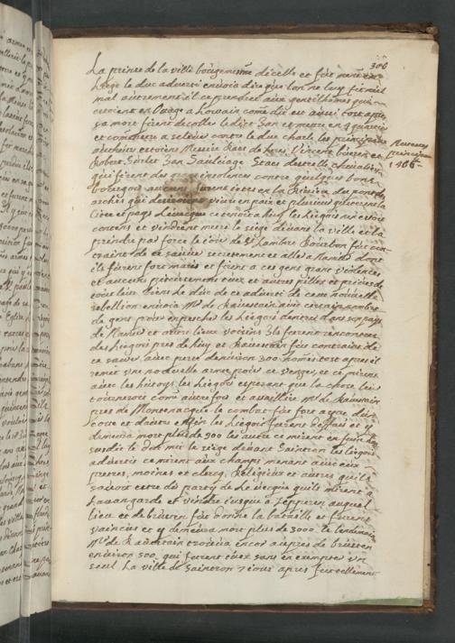 Chronique abrégé de la première fondation de la trés-renommée Cité de Tongre sous le nom et tittre de Royaume avesque les gerre et pruesse des Roys, Ducs et Pronces qui ont regné successivement avec le Catalogue des Evesques de Tongre, Mastricht et aussi de Liege ... Par Renoult dit de Cange, Citoien de Liege / Ecrit l'an de grace 1592. M. Contesse de Merode de Clermont 1652. - UB Gießen, Hs 583