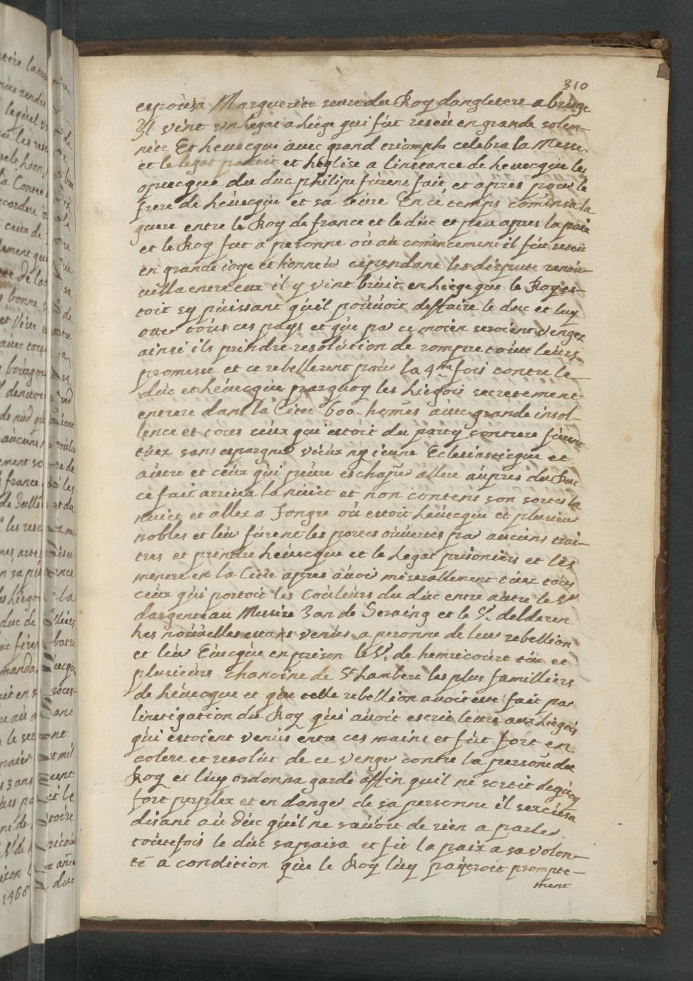Chronique abrégé de la première fondation de la trés-renommée Cité de Tongre sous le nom et tittre de Royaume avesque les gerre et pruesse des Roys, Ducs et Pronces qui ont regné successivement avec le Catalogue des Evesques de Tongre, Mastricht et aussi de Liege ... Par Renoult dit de Cange, Citoien de Liege / Ecrit l'an de grace 1592. M. Contesse de Merode de Clermont 1652. - UB Gießen, Hs 583