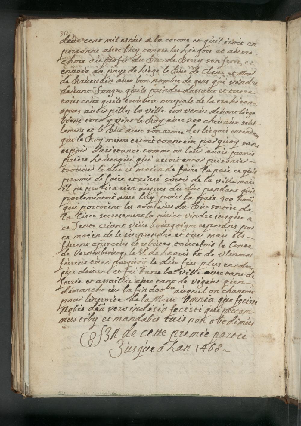 Chronique abrégé de la première fondation de la trés-renommée Cité de Tongre sous le nom et tittre de Royaume avesque les gerre et pruesse des Roys, Ducs et Pronces qui ont regné successivement avec le Catalogue des Evesques de Tongre, Mastricht et aussi de Liege ... Par Renoult dit de Cange, Citoien de Liege / Ecrit l'an de grace 1592. M. Contesse de Merode de Clermont 1652. - UB Gießen, Hs 583