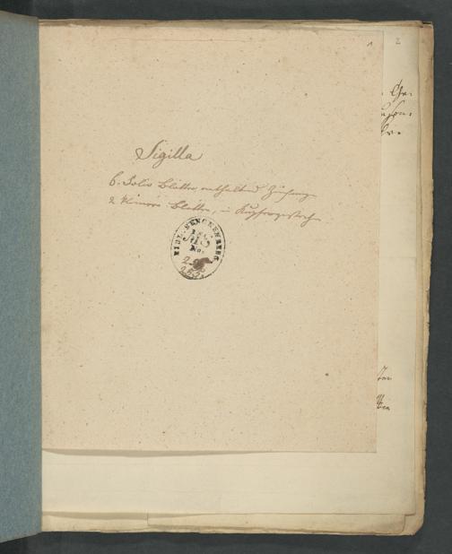 UB Gießen, Hs 172 - Sigilla : Sechs Querfolio-Blätter, enthaltend Handzeichnungen von Siegeln : zwei Blätter in 4. enthaltend in Kupfer gestochene Siegel. - UB Gießen, Hs 172