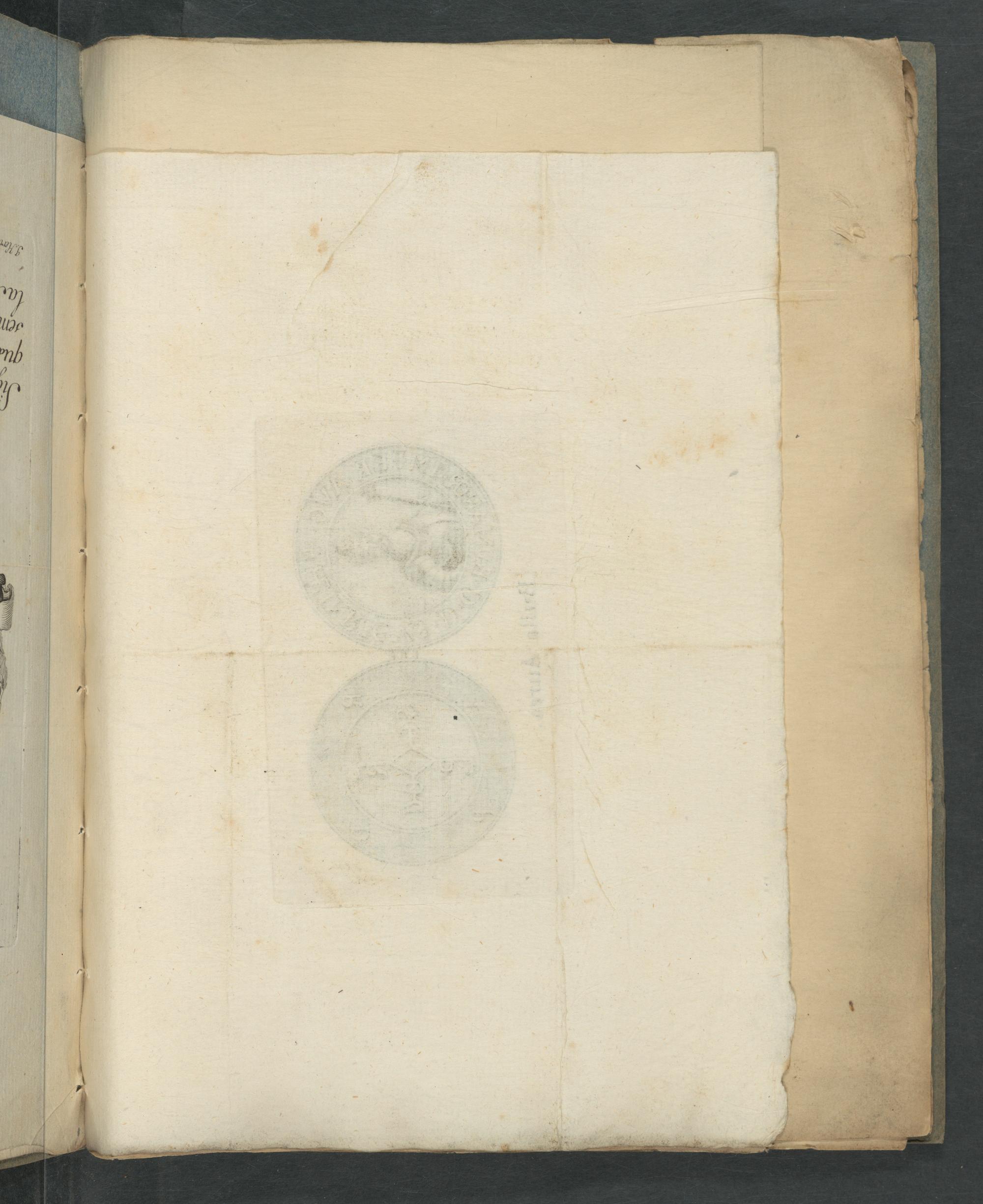 UB Gießen, Hs 172 - Sigilla : Sechs Querfolio-Blätter, enthaltend Handzeichnungen von Siegeln : zwei Blätter in 4. enthaltend in Kupfer gestochene Siegel. - UB Gießen, Hs 172