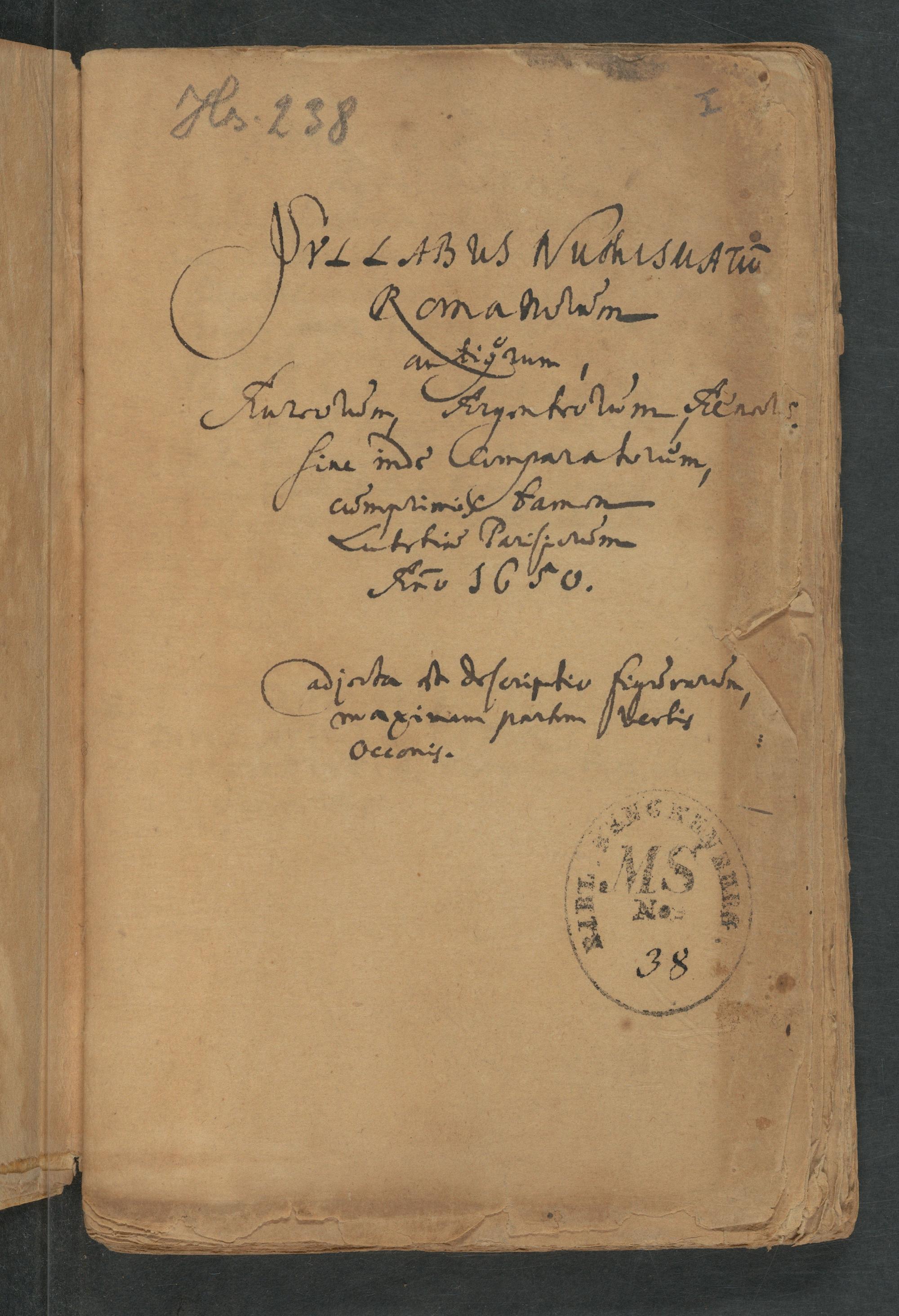 UB Gießen, Hs 238 - Syllabus numismatum Romanorum antiquorum. 1650
