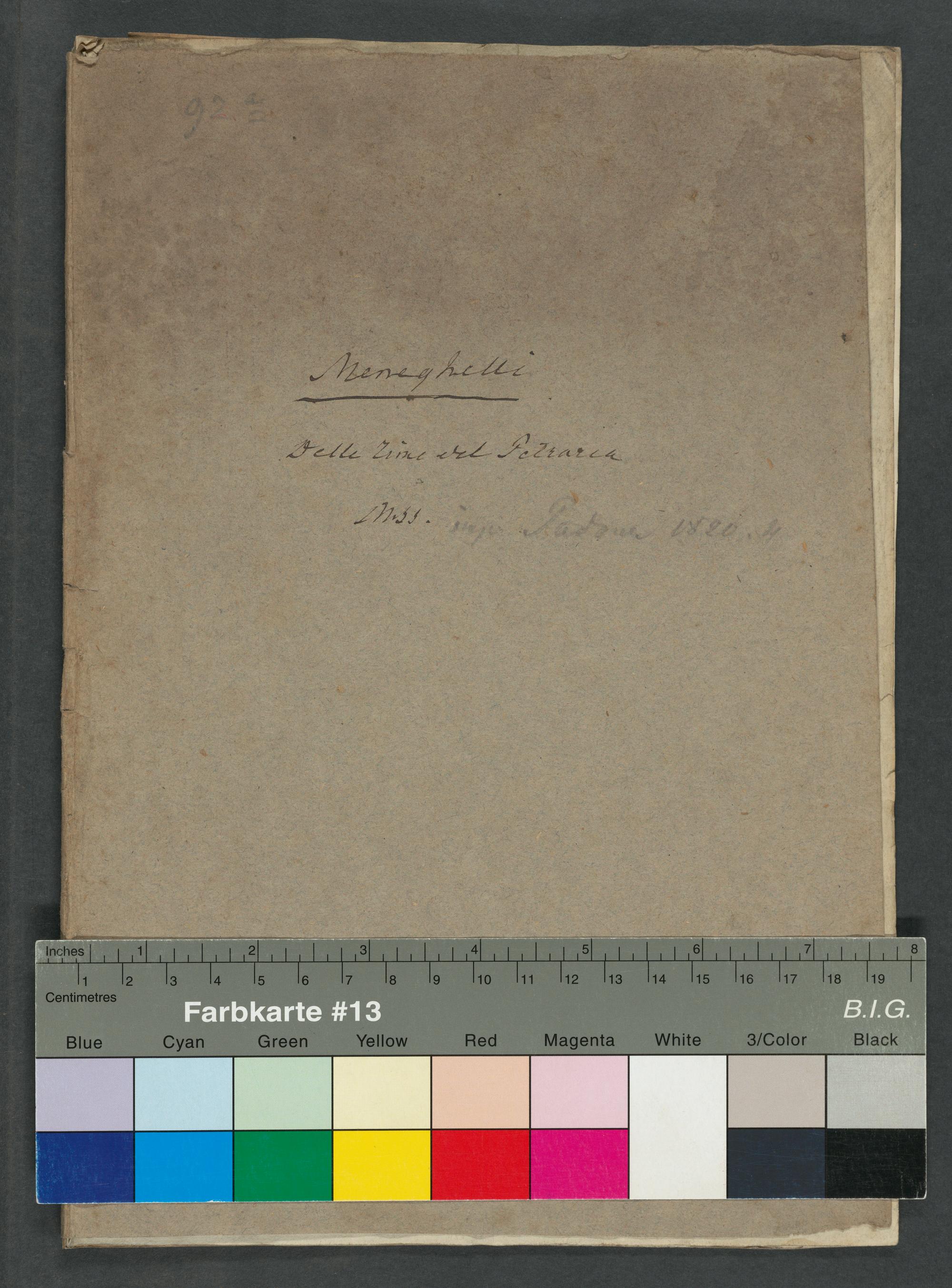 UB Gießen, Hs 92a - Relazione dell'opera "Rime del Petrarca pubblicate dal Prof. Marsand". - UB Gießen, Hs 92a / letta al Cesareo Instit. di Padova dal Prof. Ab. Ant. Meneghelli