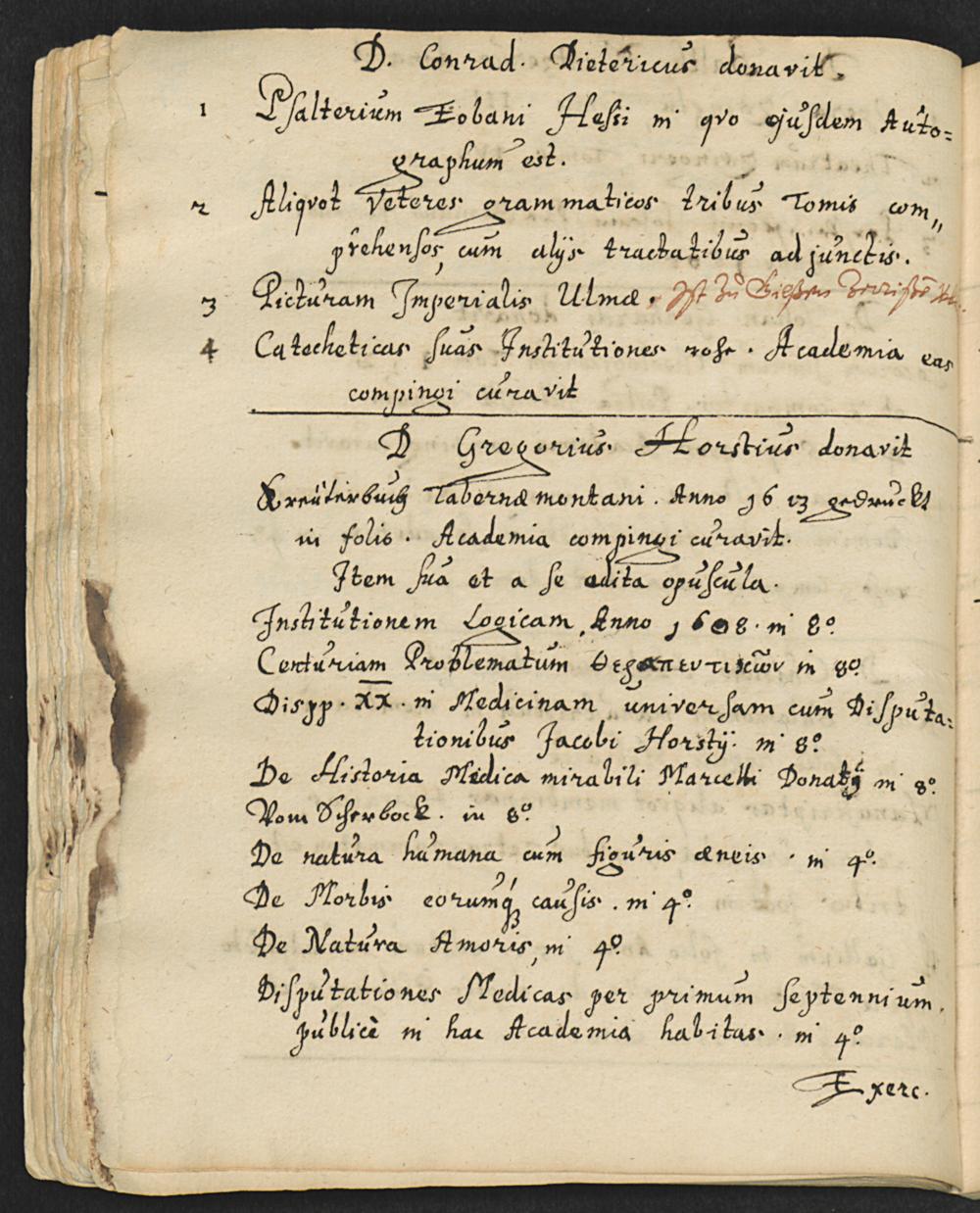 UB Gießen, Hs 28a - Gießener Bibliothekskataloge 1624 und 1628 mit Schenkungsverzeichnis - UB Gießen, Hs 28a