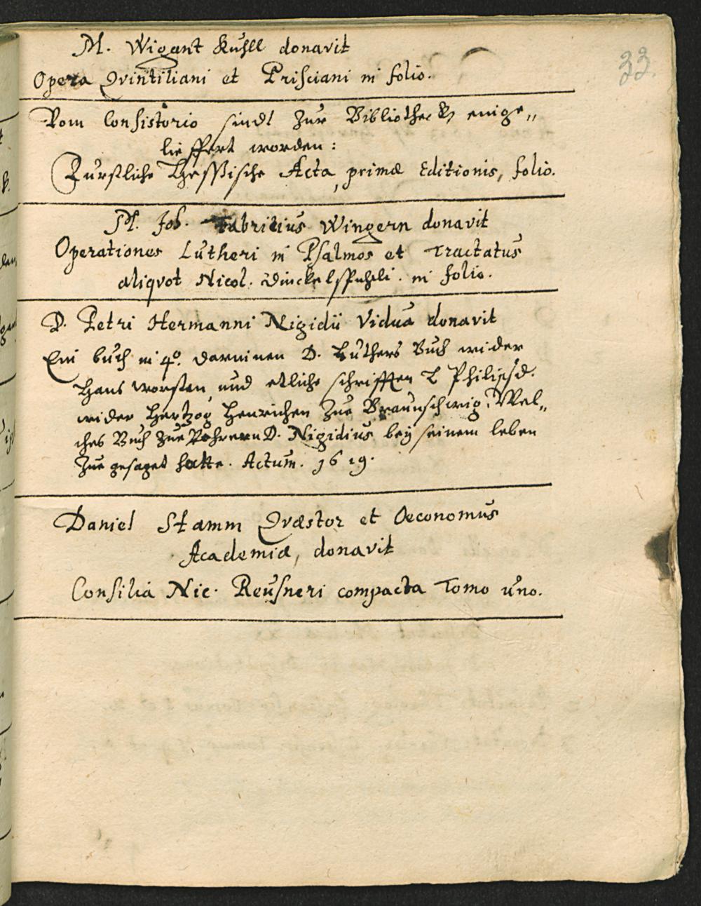 Inventarium biblothecae Gissenae 9. die Jun. 1628 confectum