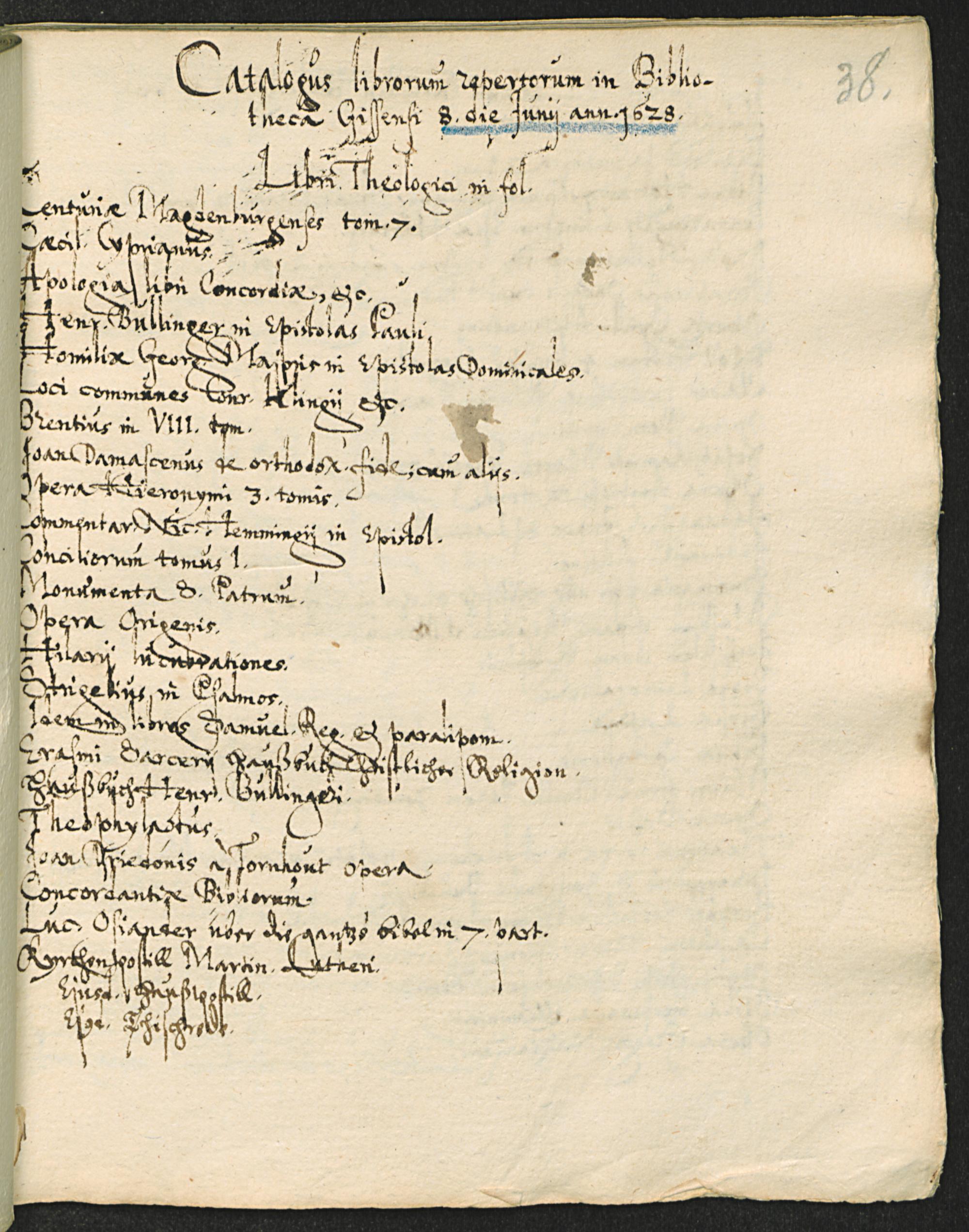 Inventarium biblothecae Gissenae 9. die Jun. 1628 confectum