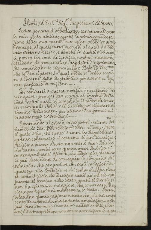 UB Gießen, Hs 251a - Opinioni del Padre fra Paolo Servita Consultore di Stato della Serenissima Repubblica di Venezia, In qual modo debba governarsi internamente e esternamente per avere perpetuo dominio ... - UB Gießen, Hs 251a