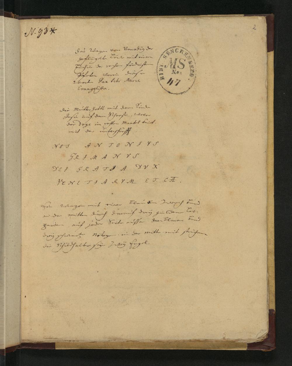 UB Gießen, Hs 252 - Instructio Fratri Barbadicho Capitaneo Vincentiae : Apographum. - UB Gießen, Hs 252 / data ab Antonio Grimani, Venet. Duce.