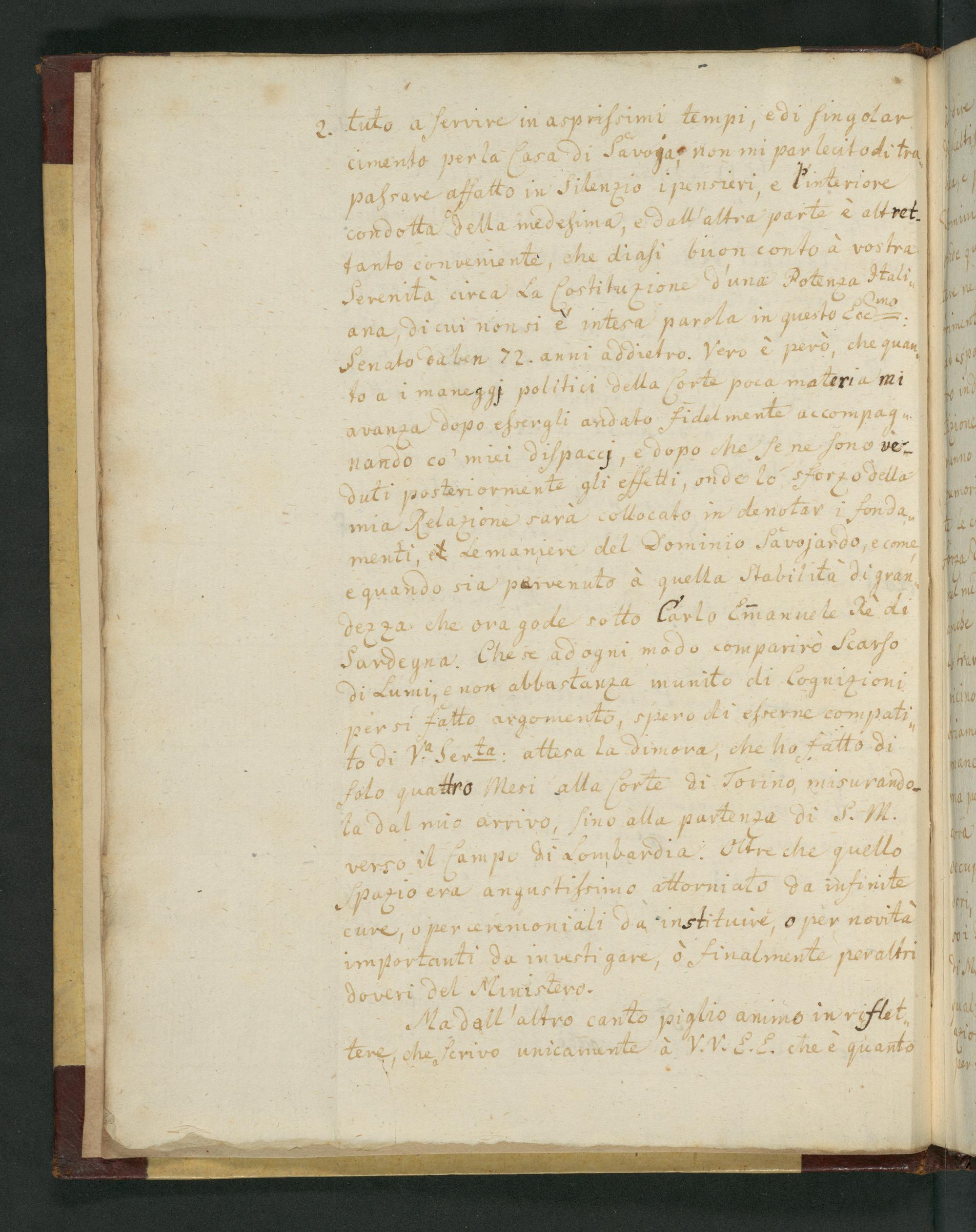 UB Gießen, Hs 254 - Relazione concernente il Governo della reale Casa di Savoja. - UB Gießen, Hs 254 / fatta dal C. Marc. Antonio Foscarini Ambasciadore della Republica di Venezia alla Corte di Turino nell' anno 1743