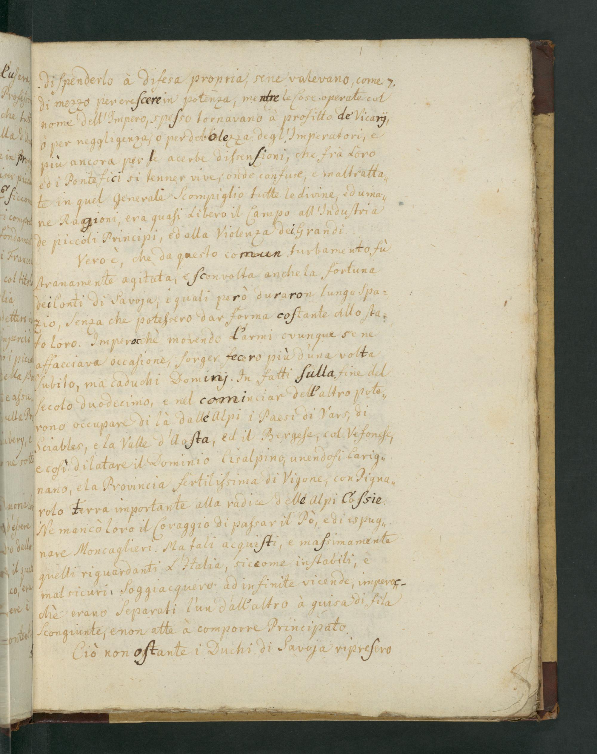 UB Gießen, Hs 254 - Relazione concernente il Governo della reale Casa di Savoja. - UB Gießen, Hs 254 / fatta dal C. Marc. Antonio Foscarini Ambasciadore della Republica di Venezia alla Corte di Turino nell' anno 1743
