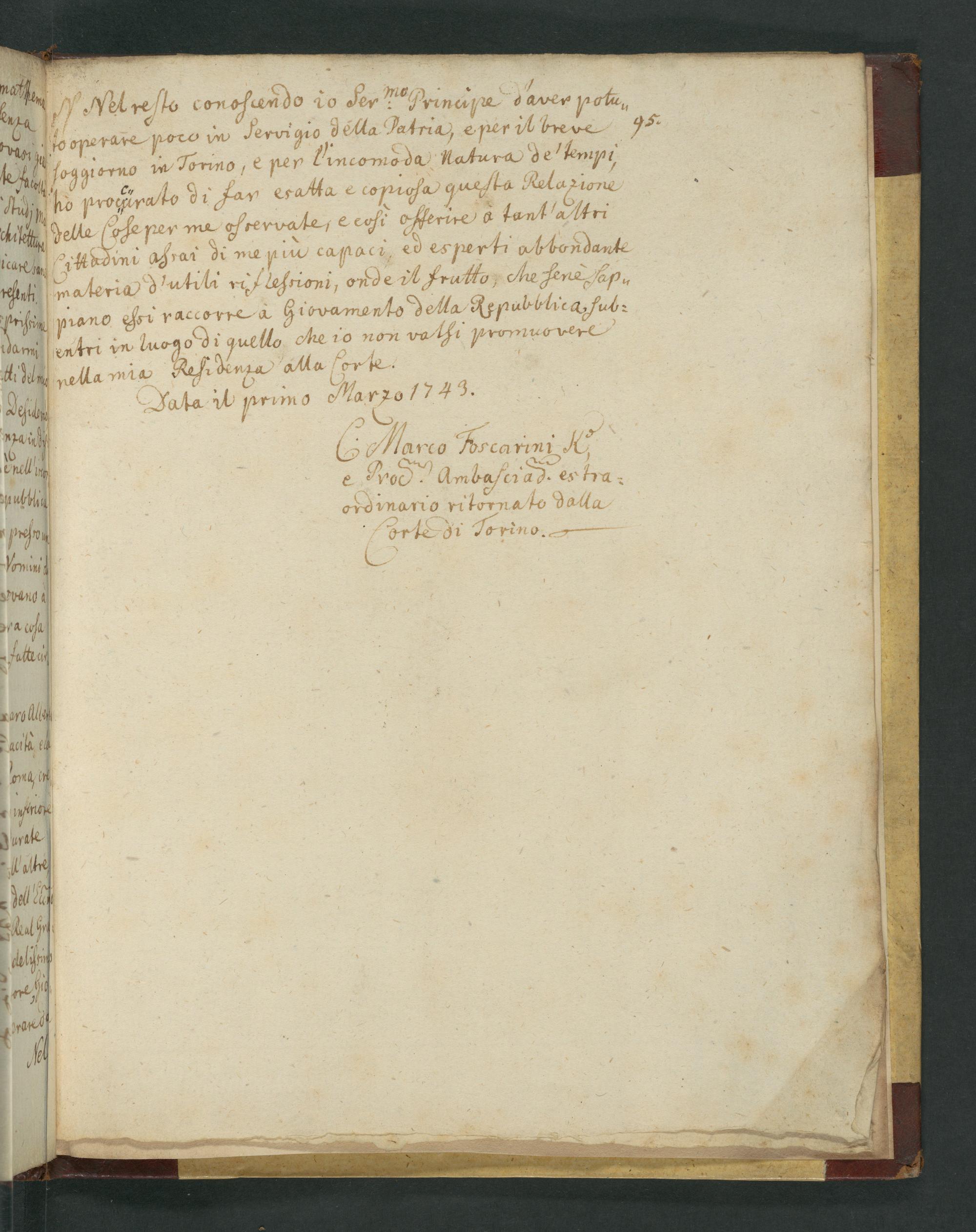 UB Gießen, Hs 254 - Relazione concernente il Governo della reale Casa di Savoja. - UB Gießen, Hs 254 / fatta dal C. Marc. Antonio Foscarini Ambasciadore della Republica di Venezia alla Corte di Turino nell' anno 1743