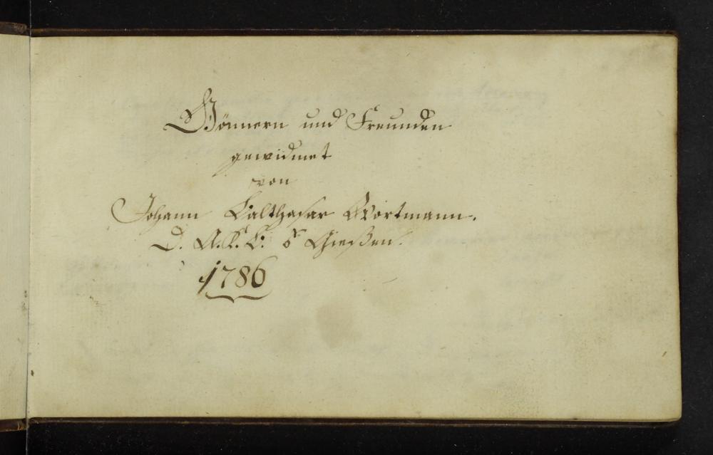 UB Gießen, Hs NF 776 - Album amicorum : Gönnern und Freunden gewidmet ; Gießen (überwiegend), Göttingen und Marburg, 1786 - 1795 / Freundschaftsalbum des Johann Balthasar Wortmann