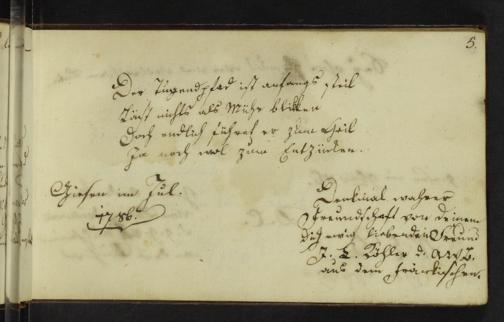 UB Gießen, Hs NF 776 - Album amicorum : Gönnern und Freunden gewidmet ; Gießen (überwiegend), Göttingen und Marburg, 1786 - 1795 / Freundschaftsalbum des Johann Balthasar Wortmann