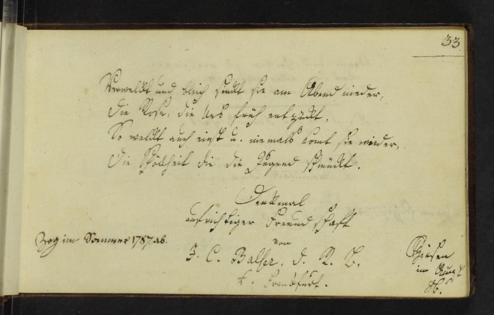 UB Gießen, Hs NF 776 - Album amicorum : Gönnern und Freunden gewidmet ; Gießen (überwiegend), Göttingen und Marburg, 1786 - 1795 / Freundschaftsalbum des Johann Balthasar Wortmann