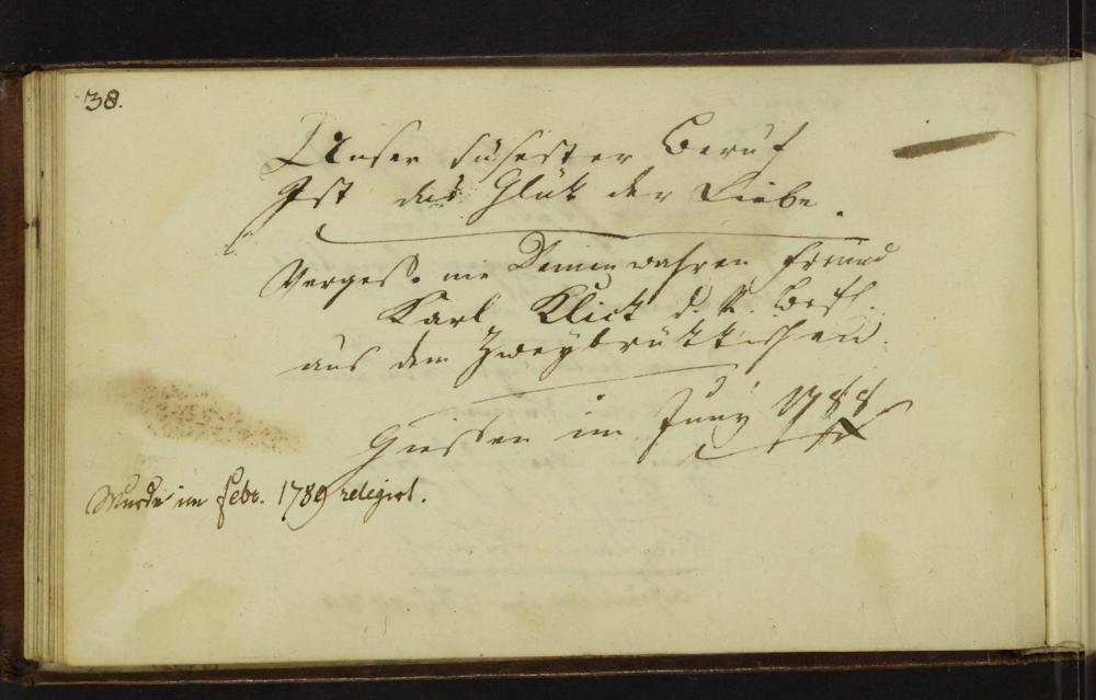 UB Gießen, Hs NF 776 - Album amicorum : Gönnern und Freunden gewidmet ; Gießen (überwiegend), Göttingen und Marburg, 1786 - 1795 / Freundschaftsalbum des Johann Balthasar Wortmann