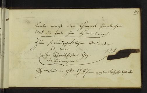 UB Gießen, Hs NF 776 - Album amicorum : Gönnern und Freunden gewidmet ; Gießen (überwiegend), Göttingen und Marburg, 1786 - 1795 / Freundschaftsalbum des Johann Balthasar Wortmann