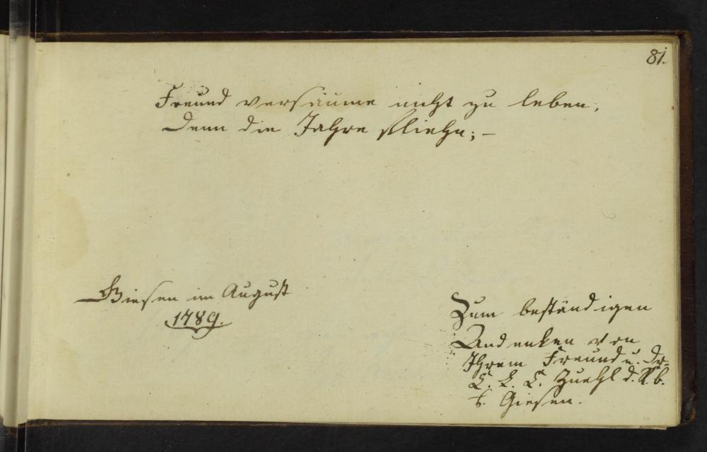 UB Gießen, Hs NF 776 - Album amicorum : Gönnern und Freunden gewidmet ; Gießen (überwiegend), Göttingen und Marburg, 1786 - 1795 / Freundschaftsalbum des Johann Balthasar Wortmann