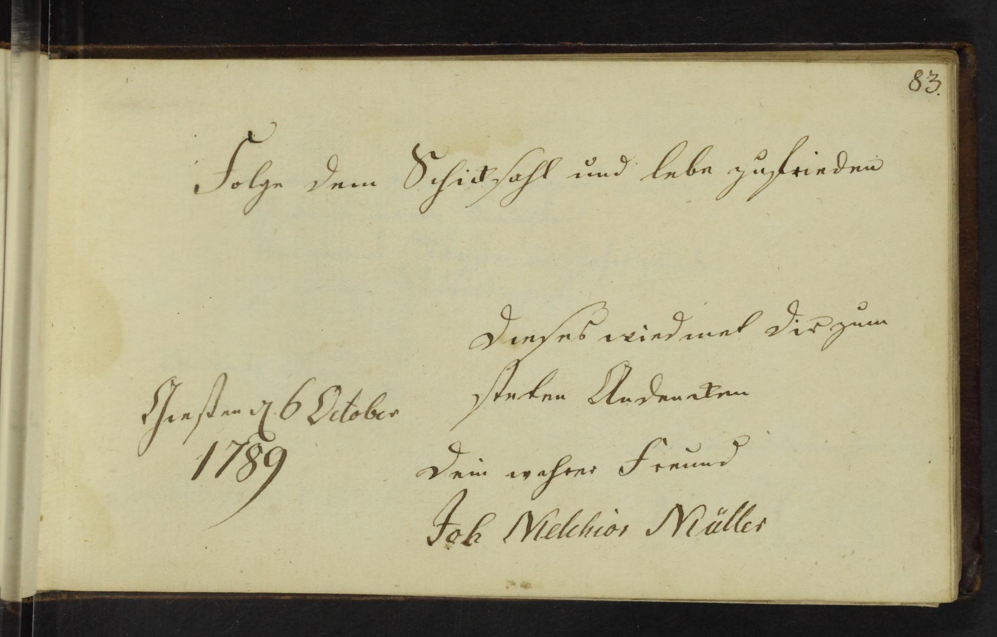 UB Gießen, Hs NF 776 - Album amicorum : Gönnern und Freunden gewidmet ; Gießen (überwiegend), Göttingen und Marburg, 1786 - 1795 / Freundschaftsalbum des Johann Balthasar Wortmann