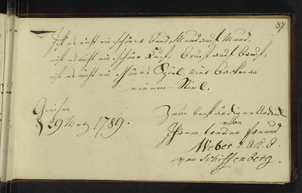 UB Gießen, Hs NF 776 - Album amicorum : Gönnern und Freunden gewidmet ; Gießen (überwiegend), Göttingen und Marburg, 1786 - 1795 / Freundschaftsalbum des Johann Balthasar Wortmann