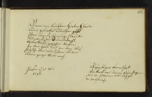 UB Gießen, Hs NF 776 - Album amicorum : Gönnern und Freunden gewidmet ; Gießen (überwiegend), Göttingen und Marburg, 1786 - 1795 / Freundschaftsalbum des Johann Balthasar Wortmann