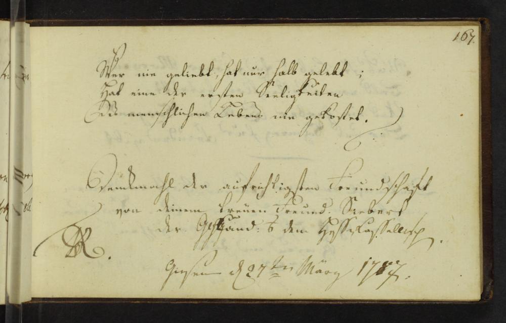 UB Gießen, Hs NF 776 - Album amicorum : Gönnern und Freunden gewidmet ; Gießen (überwiegend), Göttingen und Marburg, 1786 - 1795 / Freundschaftsalbum des Johann Balthasar Wortmann
