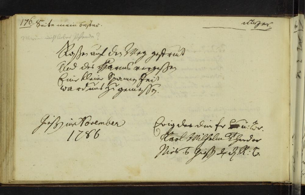 UB Gießen, Hs NF 776 - Album amicorum : Gönnern und Freunden gewidmet ; Gießen (überwiegend), Göttingen und Marburg, 1786 - 1795 / Freundschaftsalbum des Johann Balthasar Wortmann