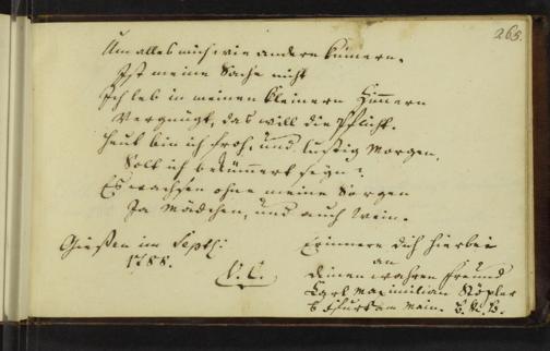 UB Gießen, Hs NF 776 - Album amicorum : Gönnern und Freunden gewidmet ; Gießen (überwiegend), Göttingen und Marburg, 1786 - 1795 / Freundschaftsalbum des Johann Balthasar Wortmann