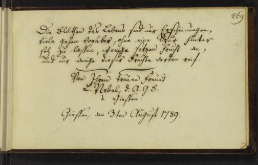 UB Gießen, Hs NF 776 - Album amicorum : Gönnern und Freunden gewidmet ; Gießen (überwiegend), Göttingen und Marburg, 1786 - 1795 / Freundschaftsalbum des Johann Balthasar Wortmann