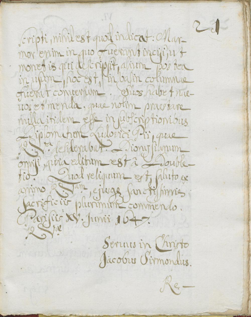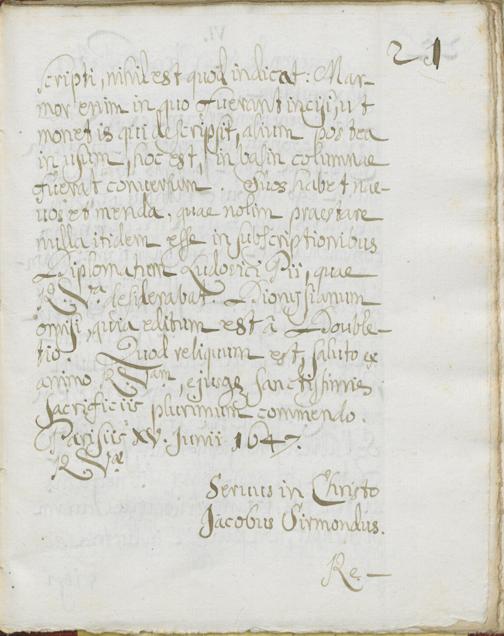 UB Gießen, Hs 126 - Jacobi Sirmondi Litterae ad P. Alexandrum Wilthemium Jesuitam ab originalibus desumptae, quae fuerant in manibus b. Schannati. - UB Gießen, Hs 126 : Briefe von Jacques Sirmond an Alexander Wiltheim (15 Nummern) in Abschrift