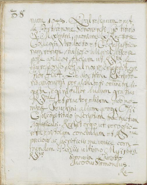 UB Gießen, Hs 126 - Jacobi Sirmondi Litterae ad P. Alexandrum Wilthemium Jesuitam ab originalibus desumptae, quae fuerant in manibus b. Schannati. - UB Gießen, Hs 126 : Briefe von Jacques Sirmond an Alexander Wiltheim (15 Nummern) in Abschrift