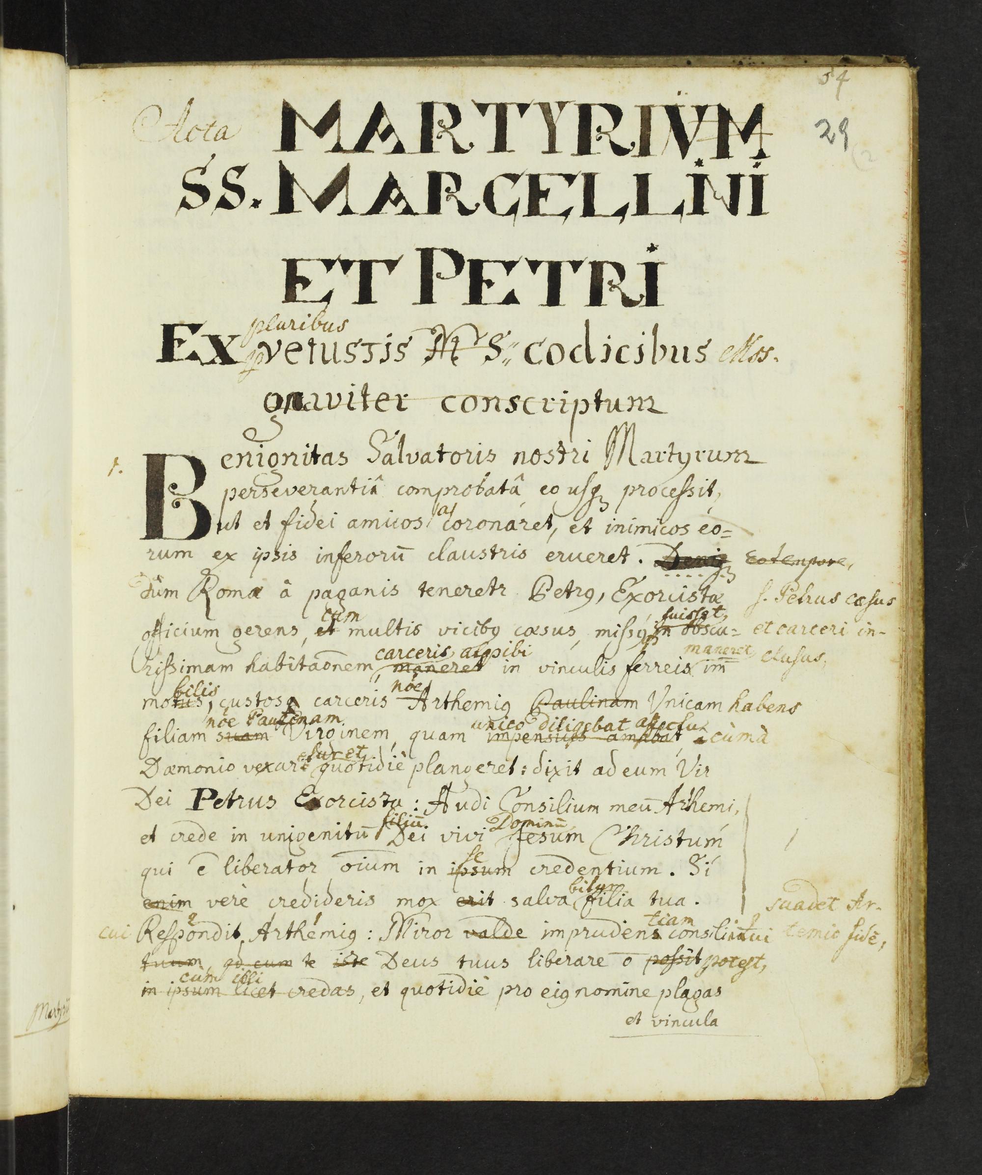 29r-33v [Johannes Reinhard Marx:] Acta Martyrii SS. Marcellini et Petri ex pluribus pervetustis codicibus manuscriptis graviter conscriptum