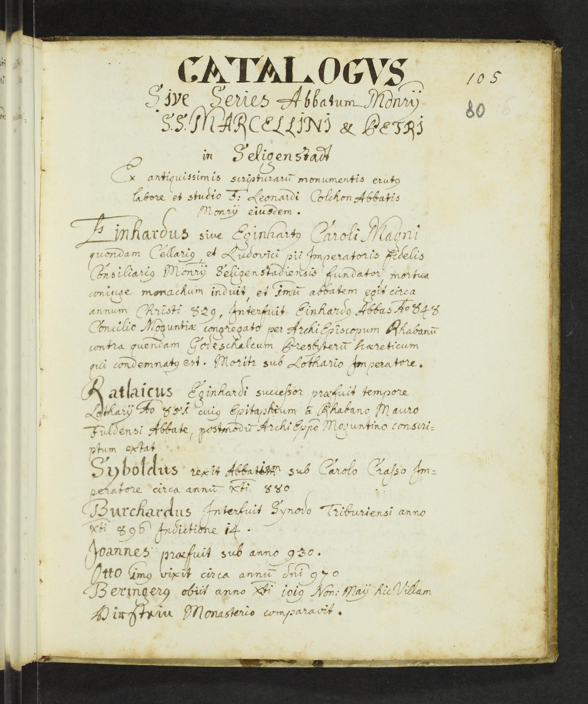 80r-82v Leonhard Colchon: Seligenstädter Abtskatalog