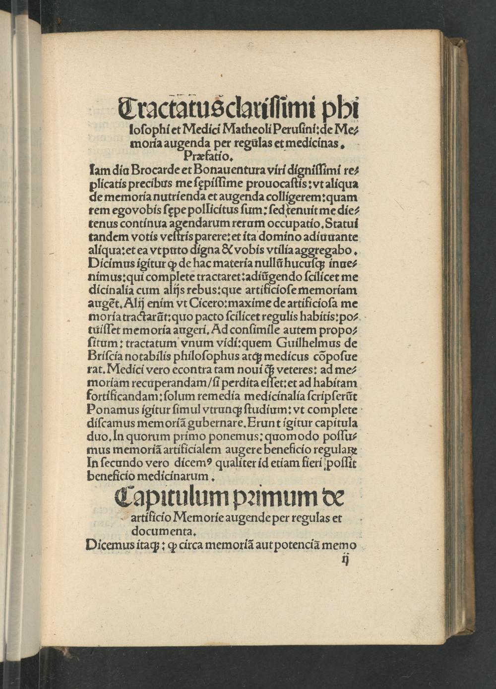Artis memoratiue Matheoli Perusini medicine Doctoris præstantissimi : Tractatus vtilissimus: cum no[n]nullis Plinij et Gordani documentis