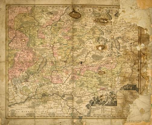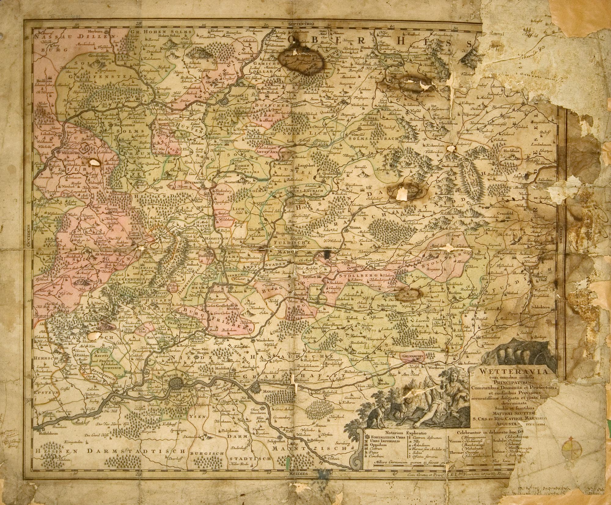 Wetteravia : cum omnibus inclusis Principatibus, Comitatibus, Dominiis et Præfecturis, et confinibus Provinciis accuratissime designata et juxta limites determinata / Studio et sumtibus Matthaei Seutteri, S. Cæs. Et Reg. Cathol. Maiest. Geogr.