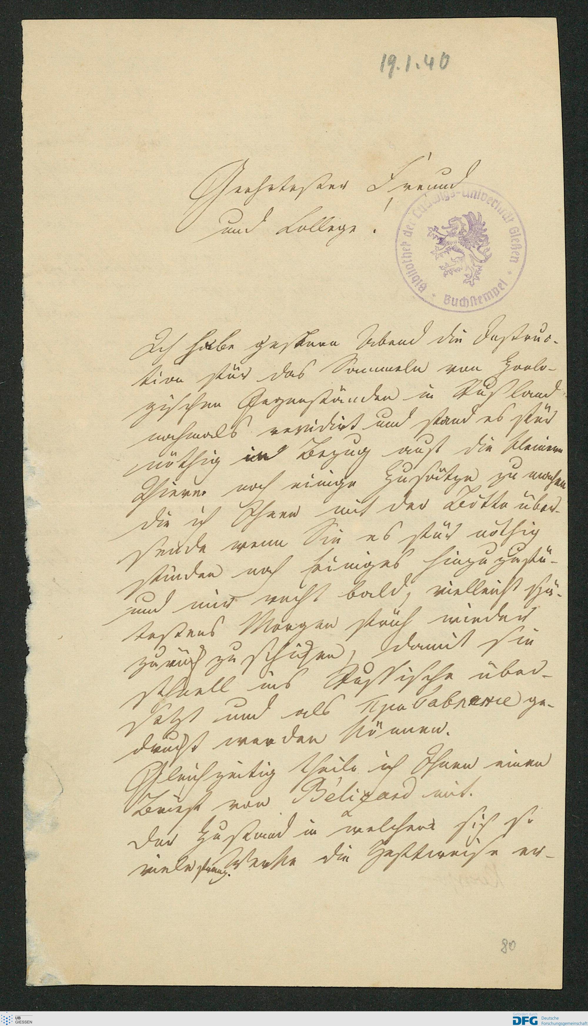 Brief von Johann Friedrich Brandt an Karl Ernst von Baer, 19.01.1840 [19t Januar 1840]