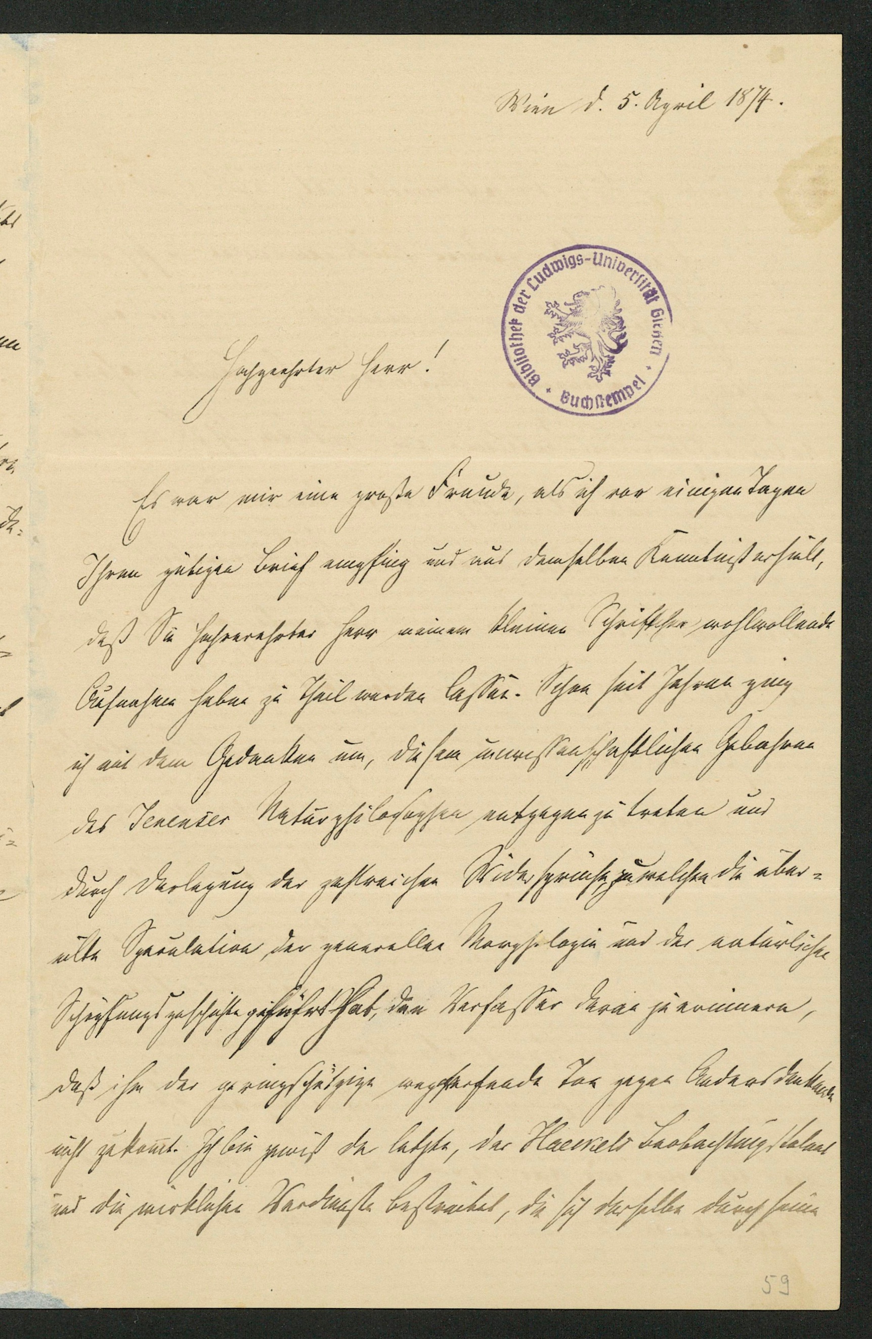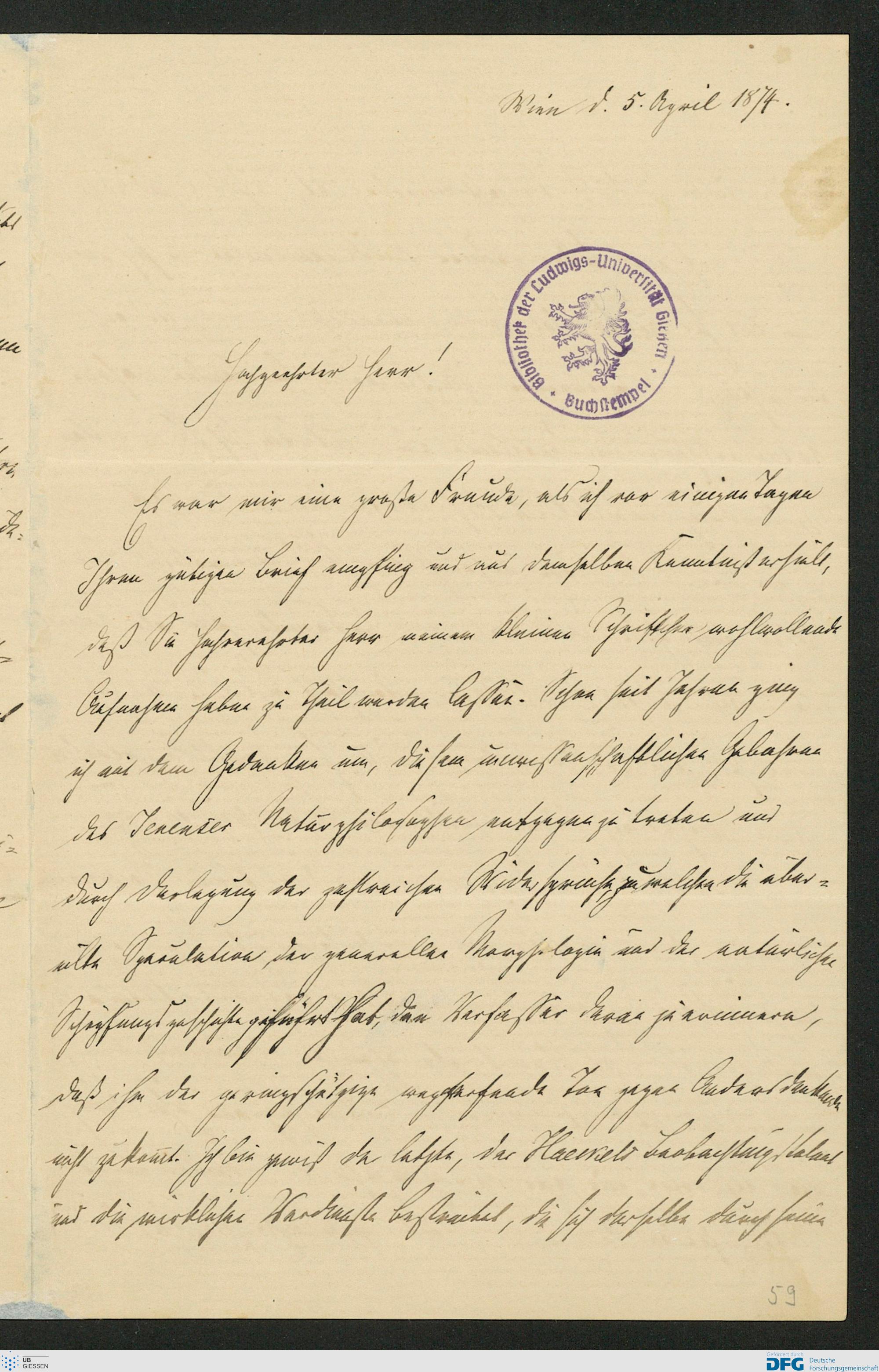 Brief von Karl Claus an Karl Ernst von Baer, 05.04.1874 [5. April 1874]
