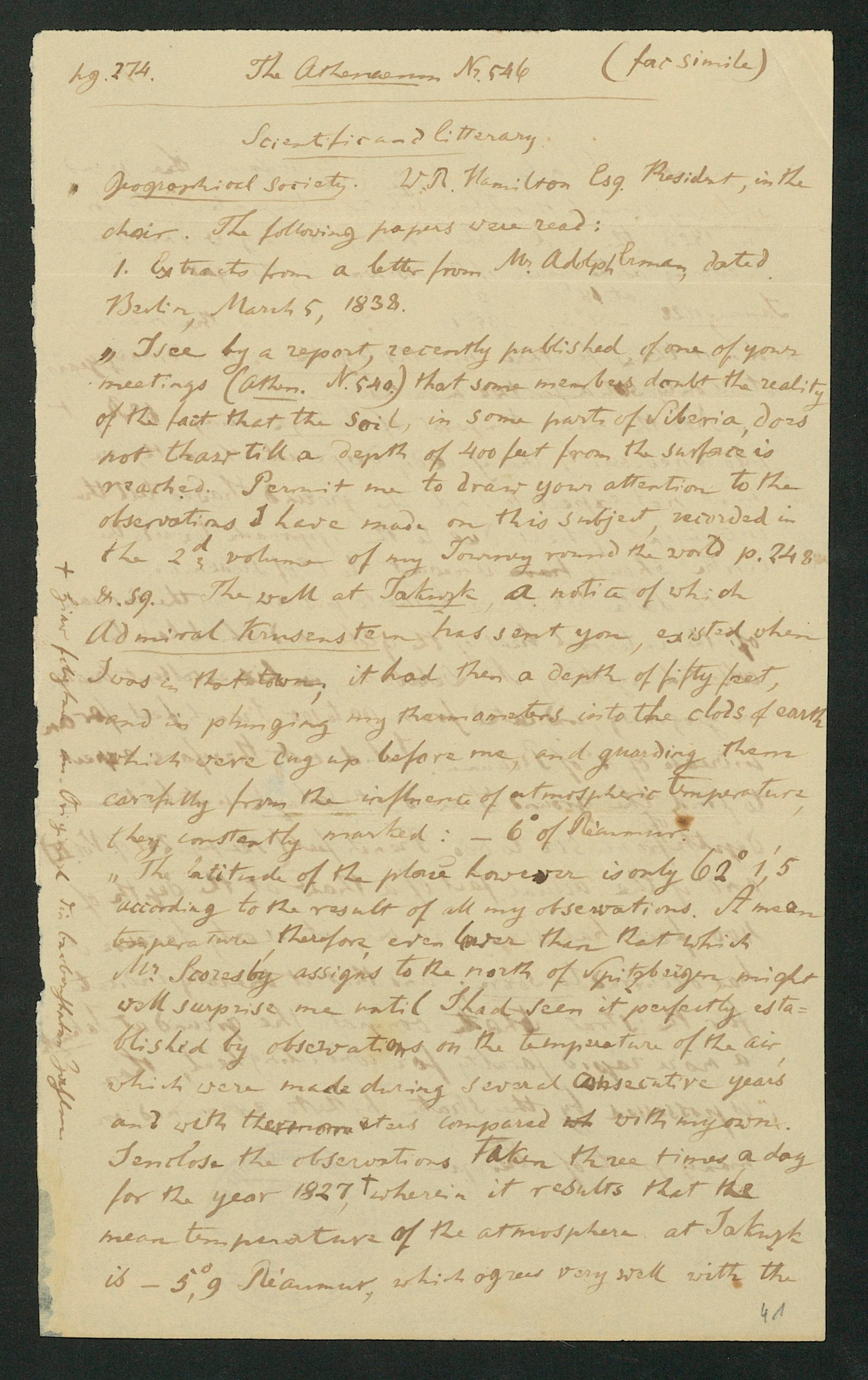 Brief von Adolf Erman an Karl Ernst von Baer, 22.05.1838 [22t Mai 1838]