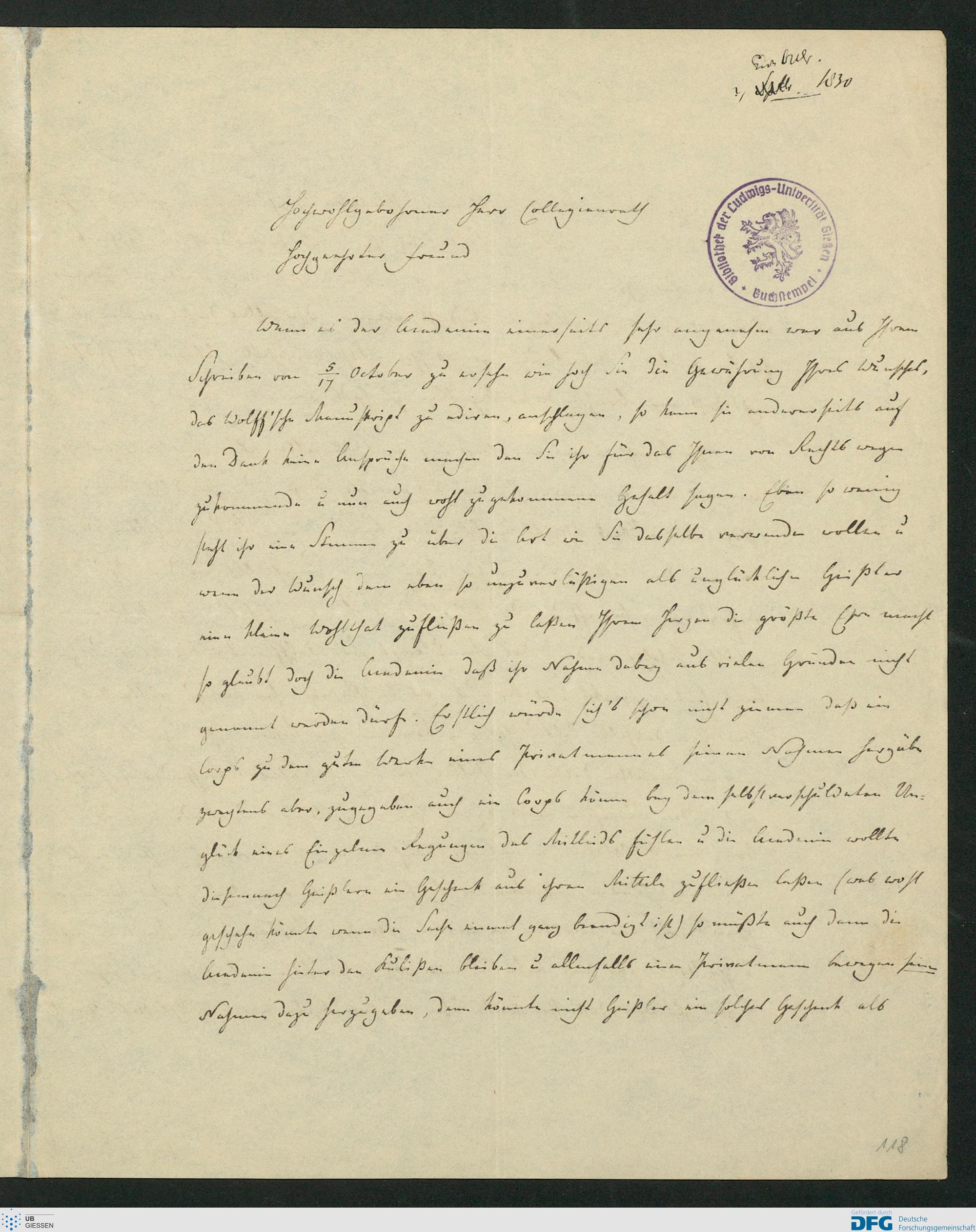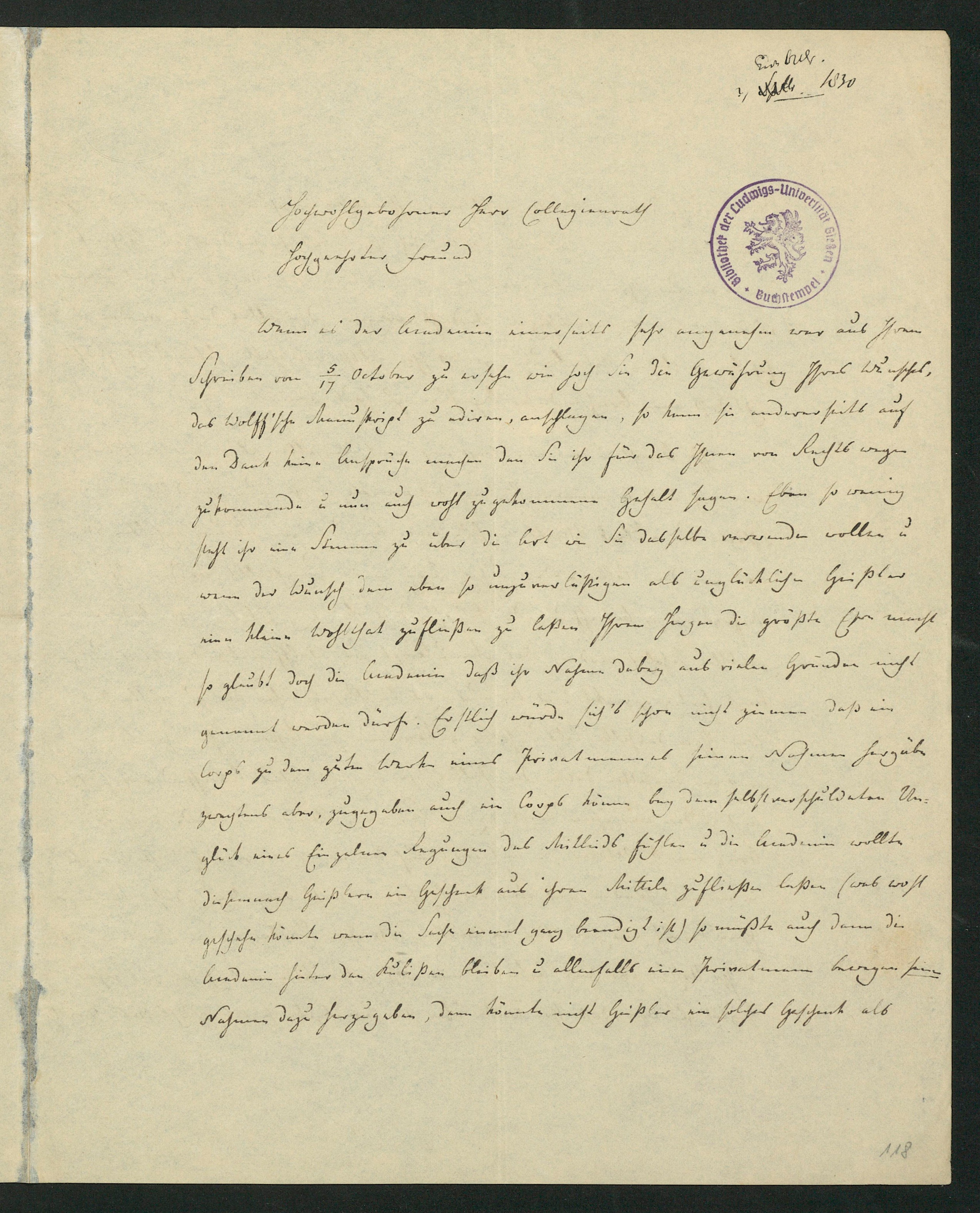 Brief von Paul Heinrich Fuss an Karl Ernst von Baer, 18.10.1830 [18. Oktober [1830]]