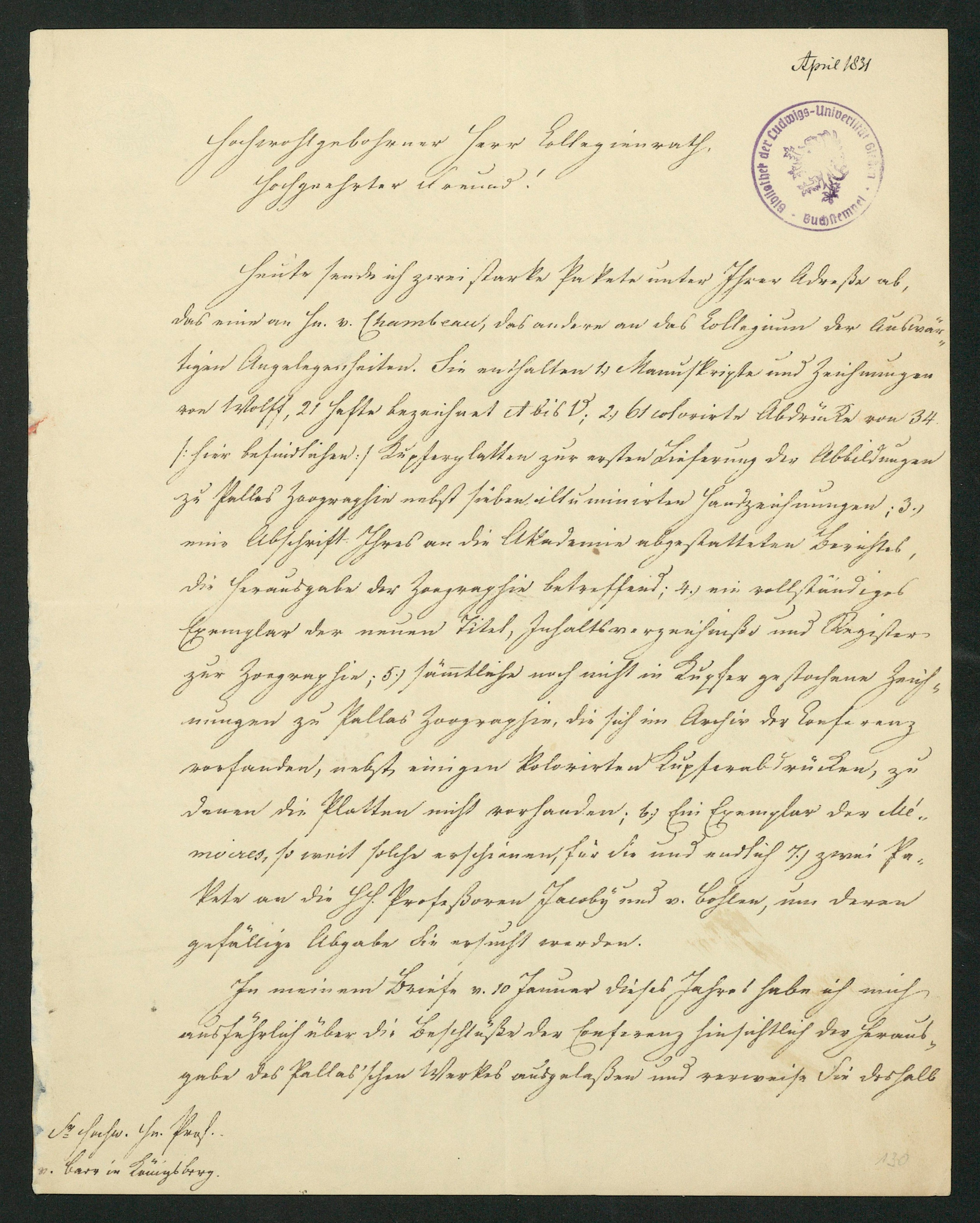 Brief von Paul Heinrich Fuss an Karl Ernst von Baer, 02.04.1831 [2n April 1831]