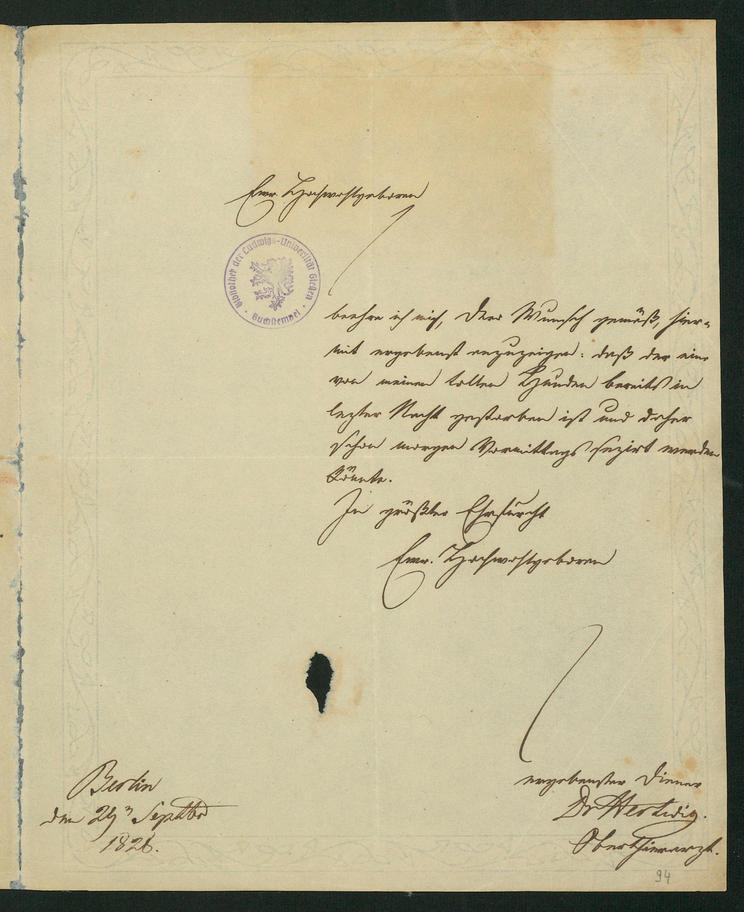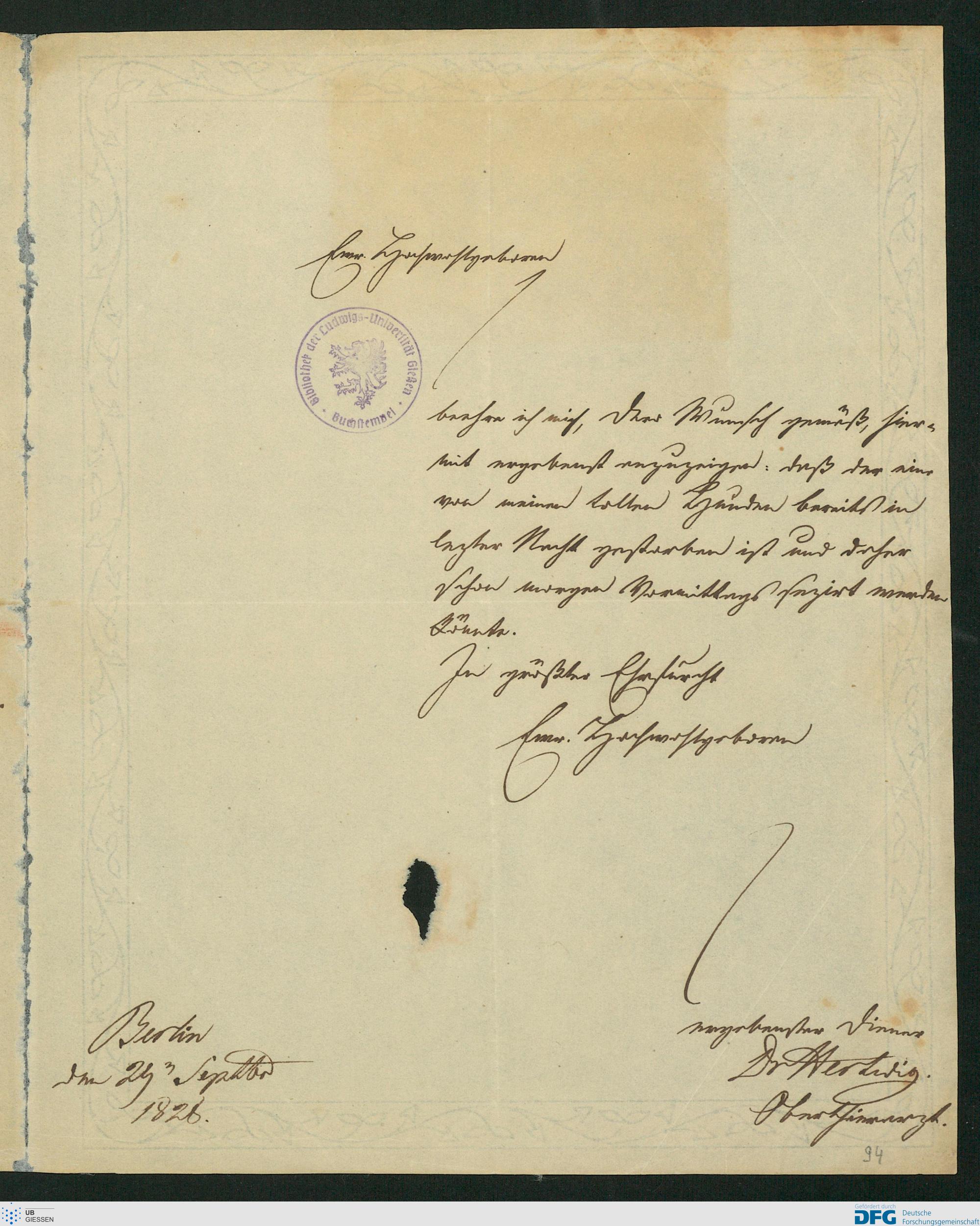 Brief von Carl Heinrich Hertwig an Karl Ernst von Baer, 29.09.1828 [29n Septbr 1828]