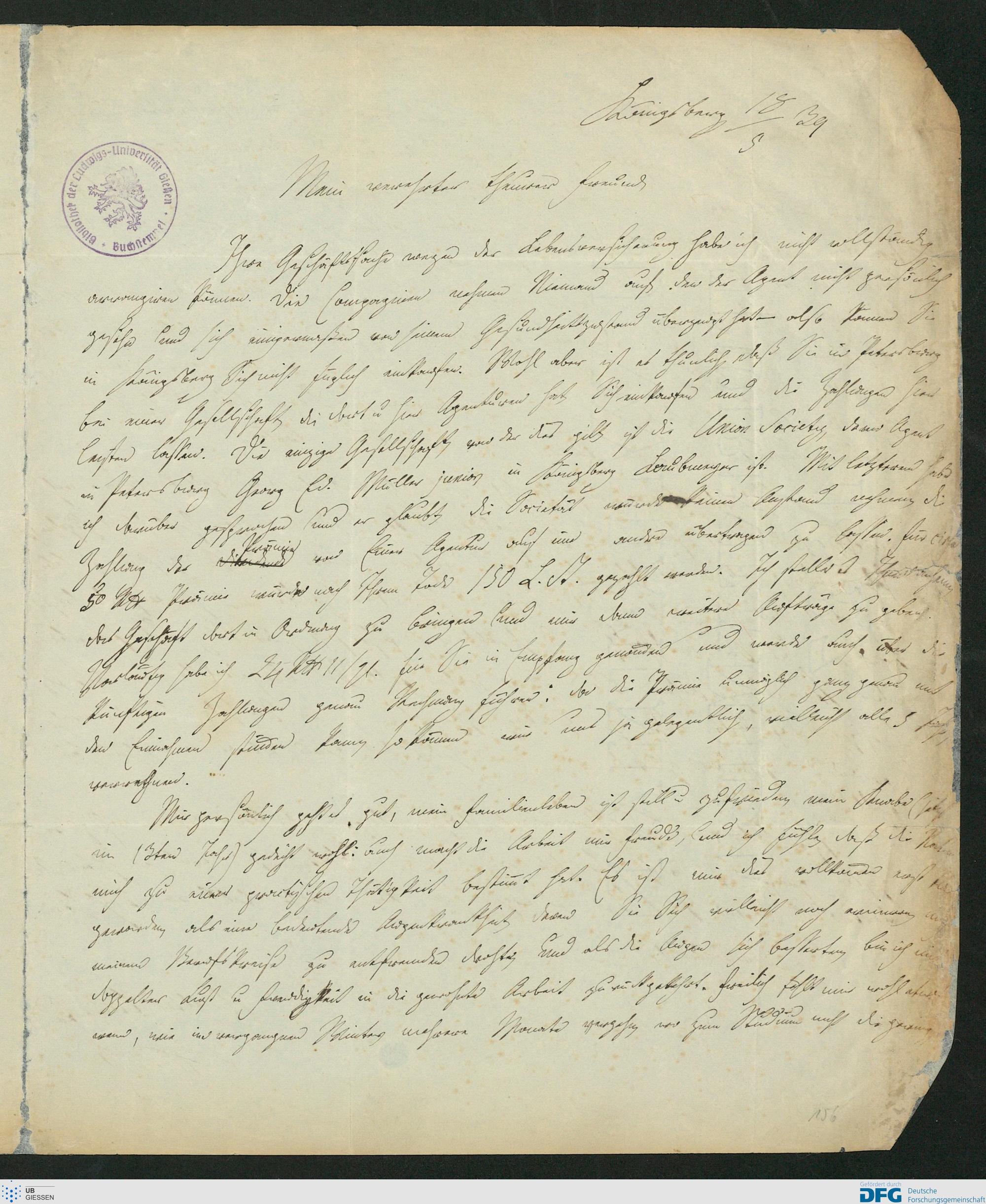 Brief von Georg Hirsch an Karl Ernst von Baer, 18.05.1839 [18 / 5 39]