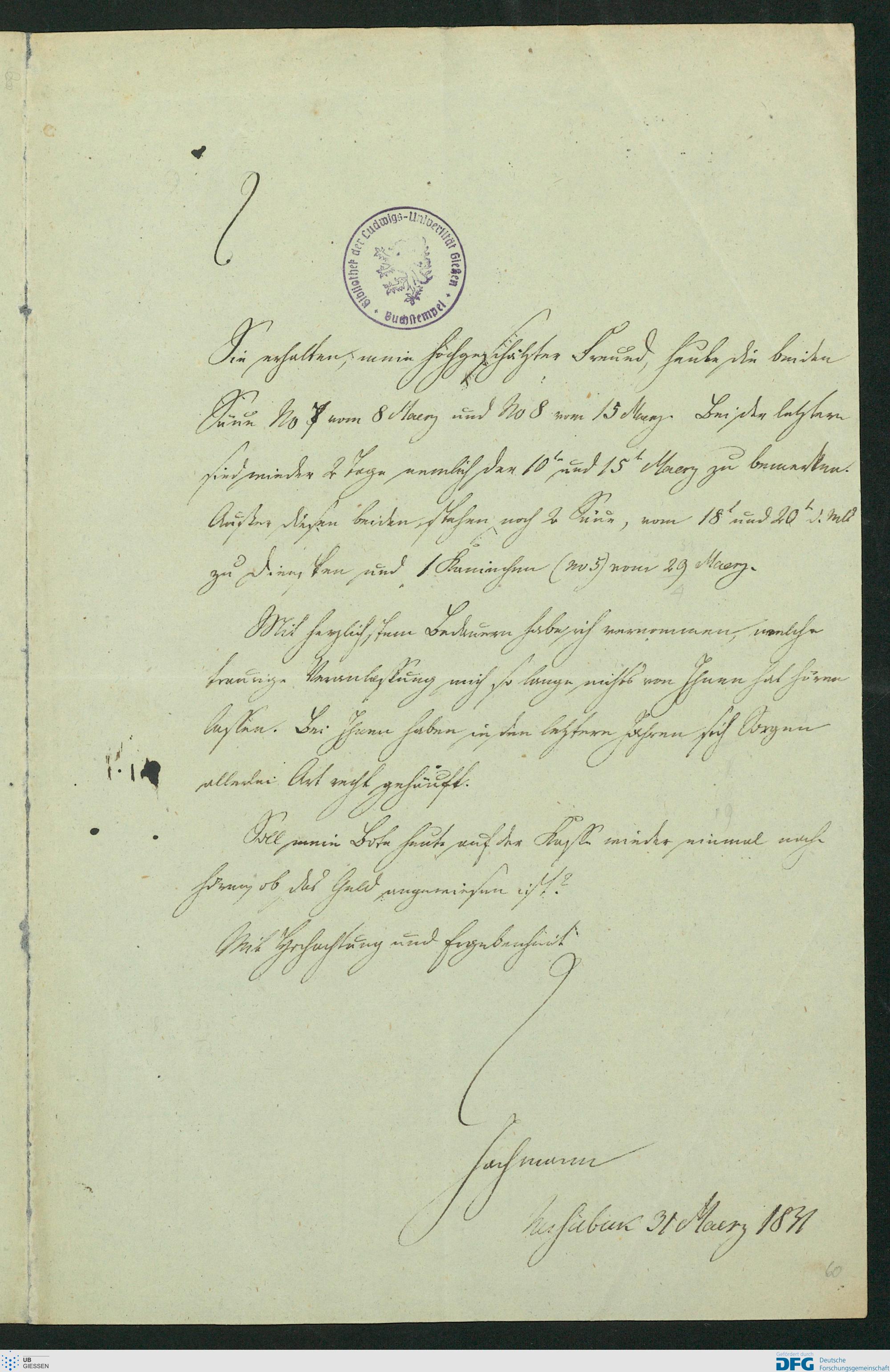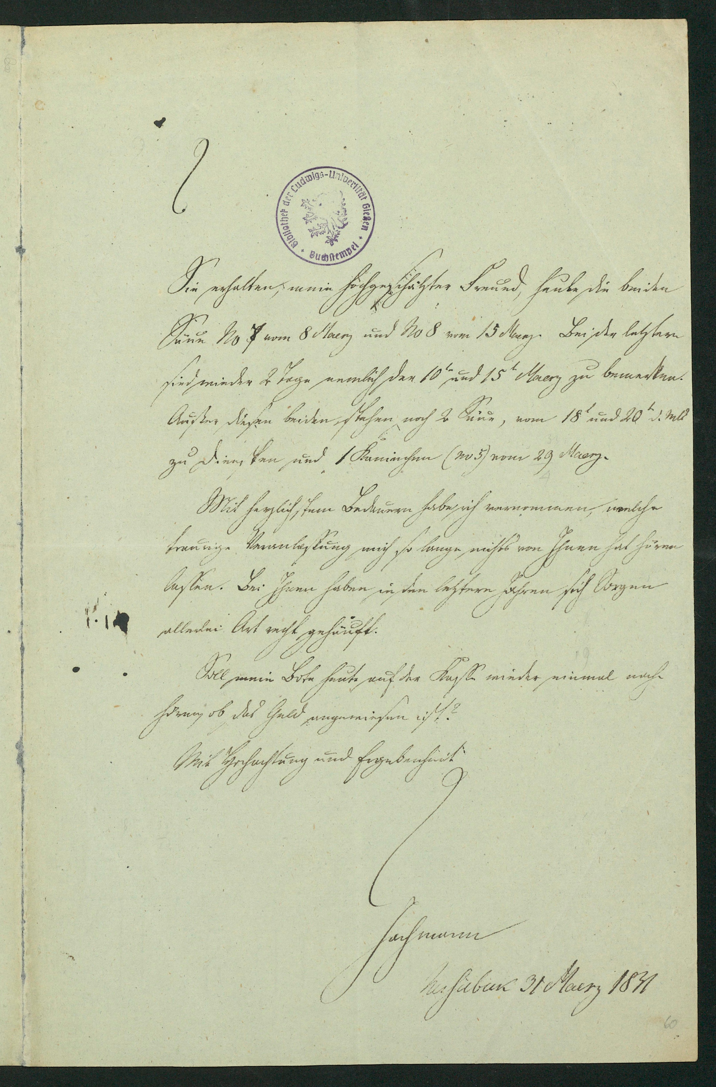 Brief von Moritz Julius Jachmann an Karl Ernst von Baer, 31.03.1831 [31 Maerz 1831]