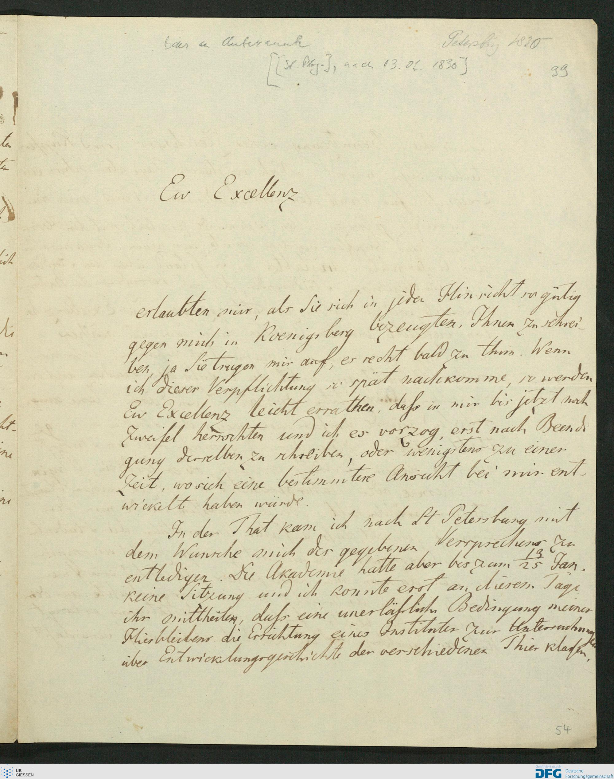 Brief von Karl Ernst von Baer an Unbekannt, 1830 [o.D. (nach 13.01.1830)]