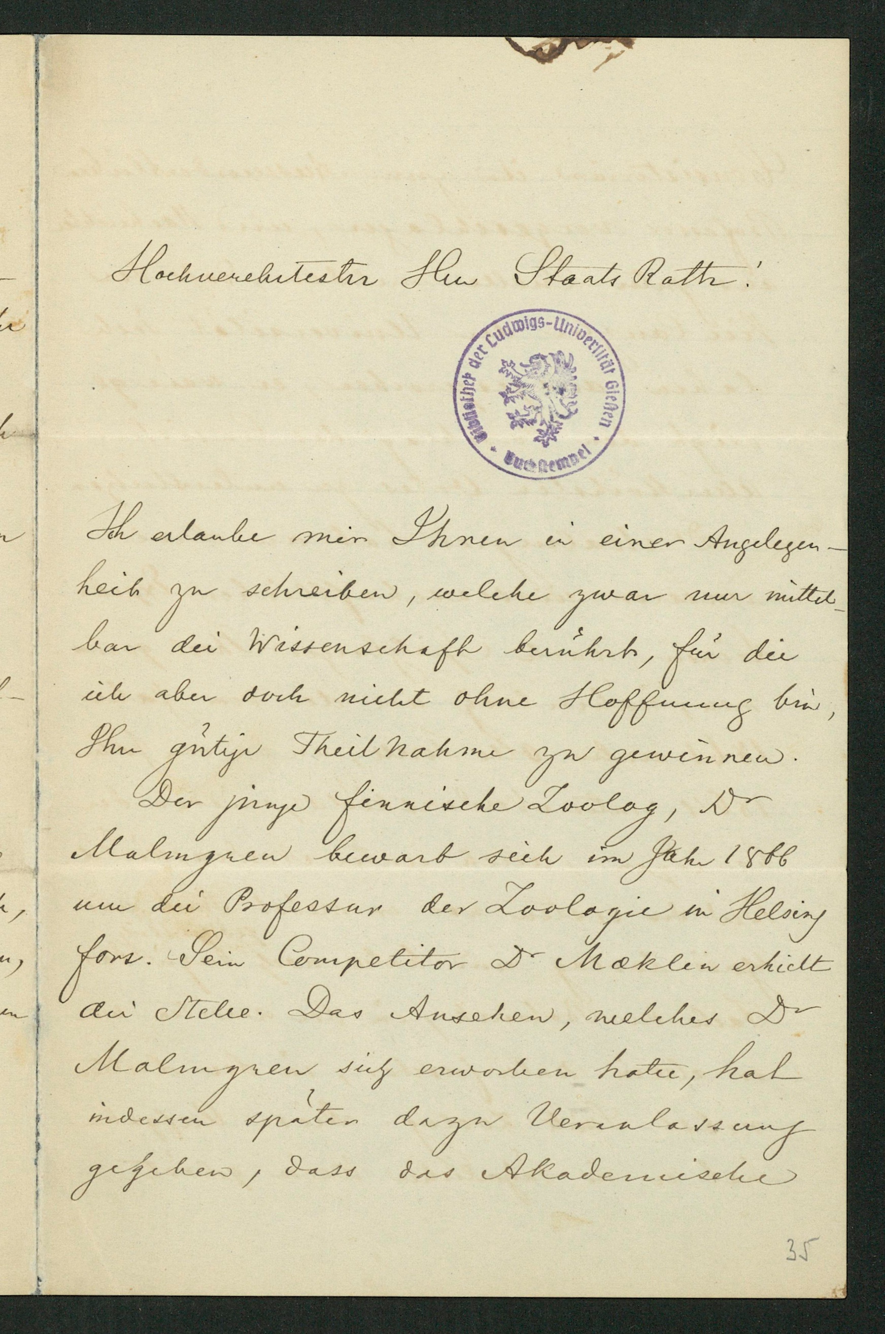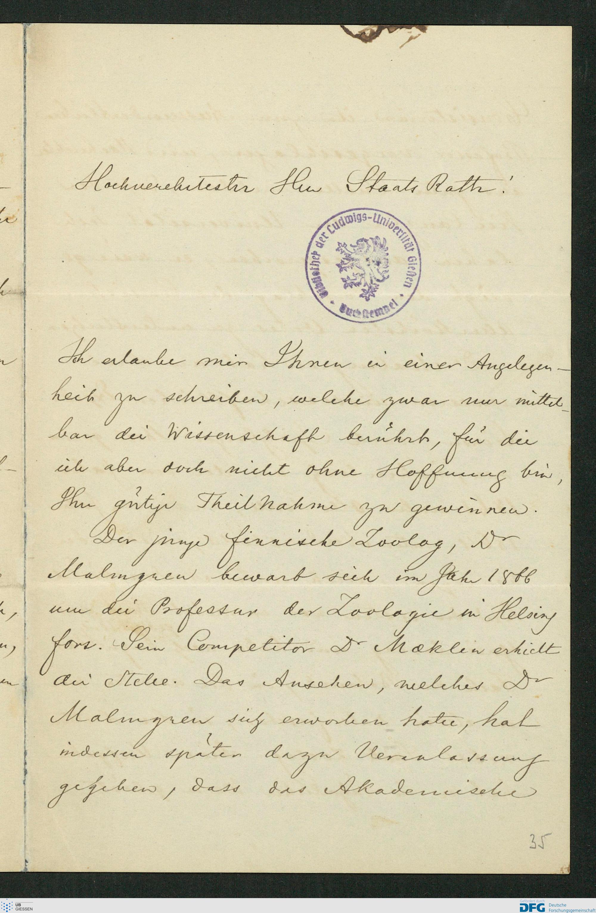 Brief von Sven Ludwig Lovén an Karl Ernst von Baer, 01.12.1868 [1 December 1868]