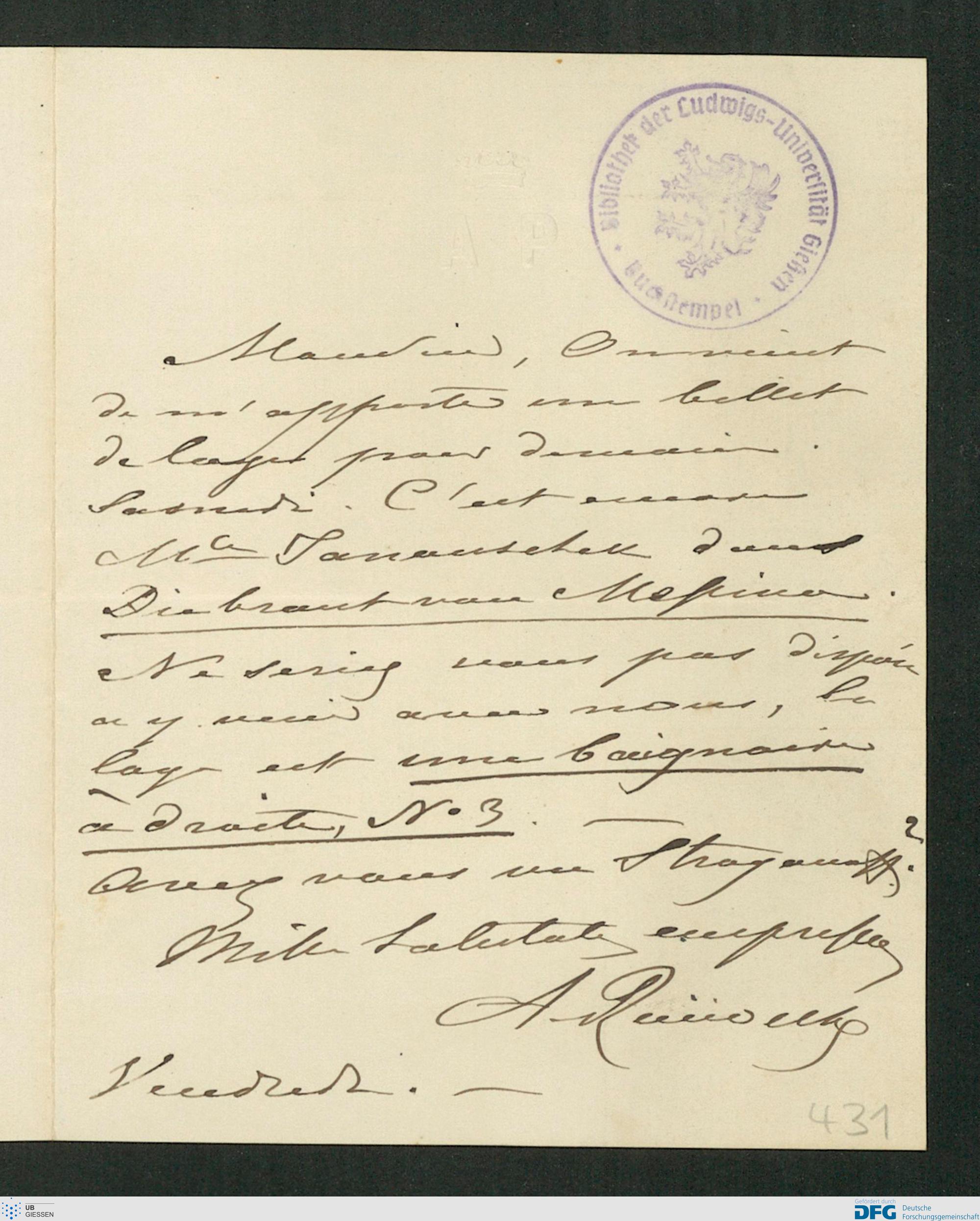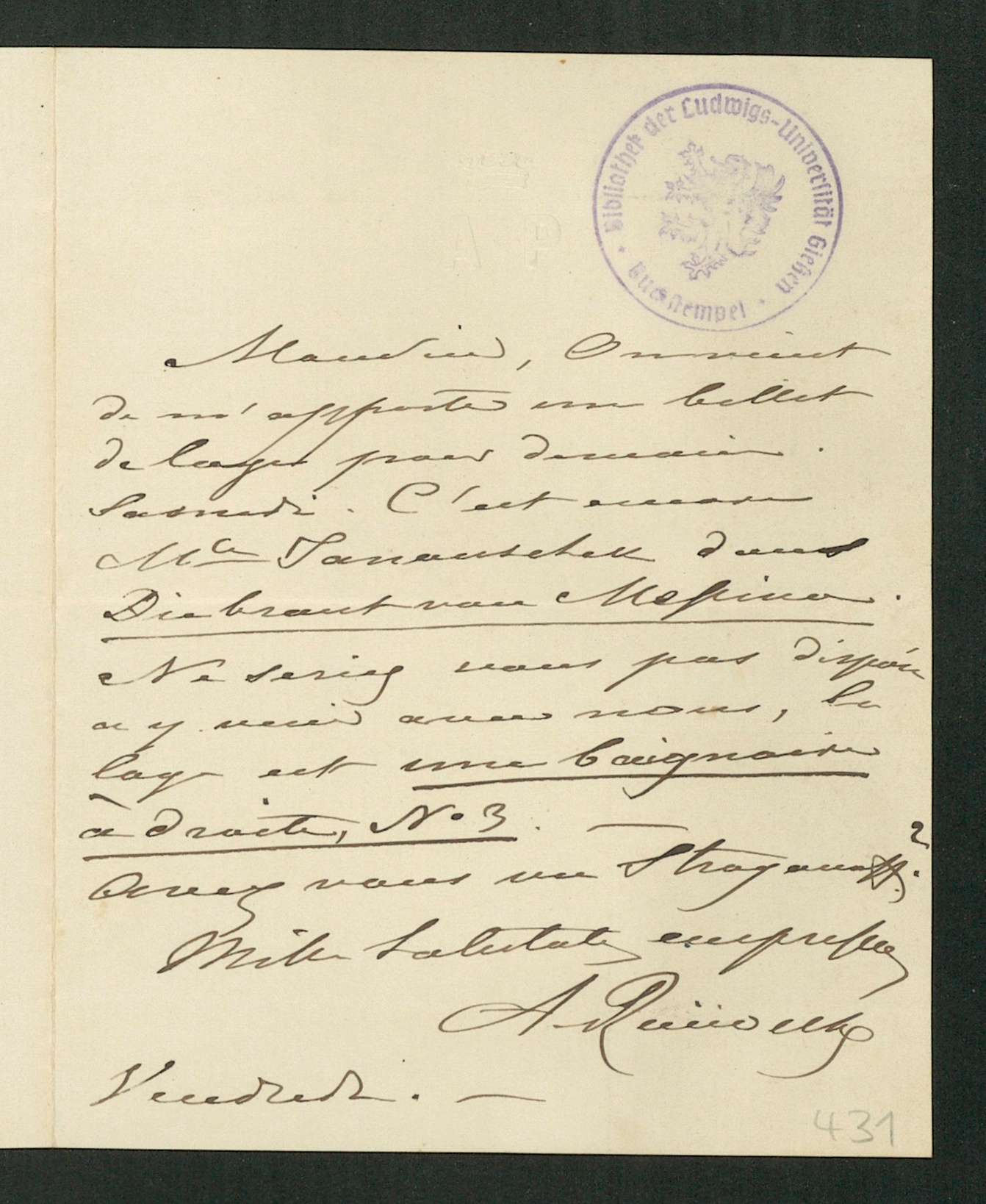 Brief von Anna Michajlovna Raevskaja an Karl Ernst von Baer, 1866 [Vendredi o.J. (ca. April 1866)]