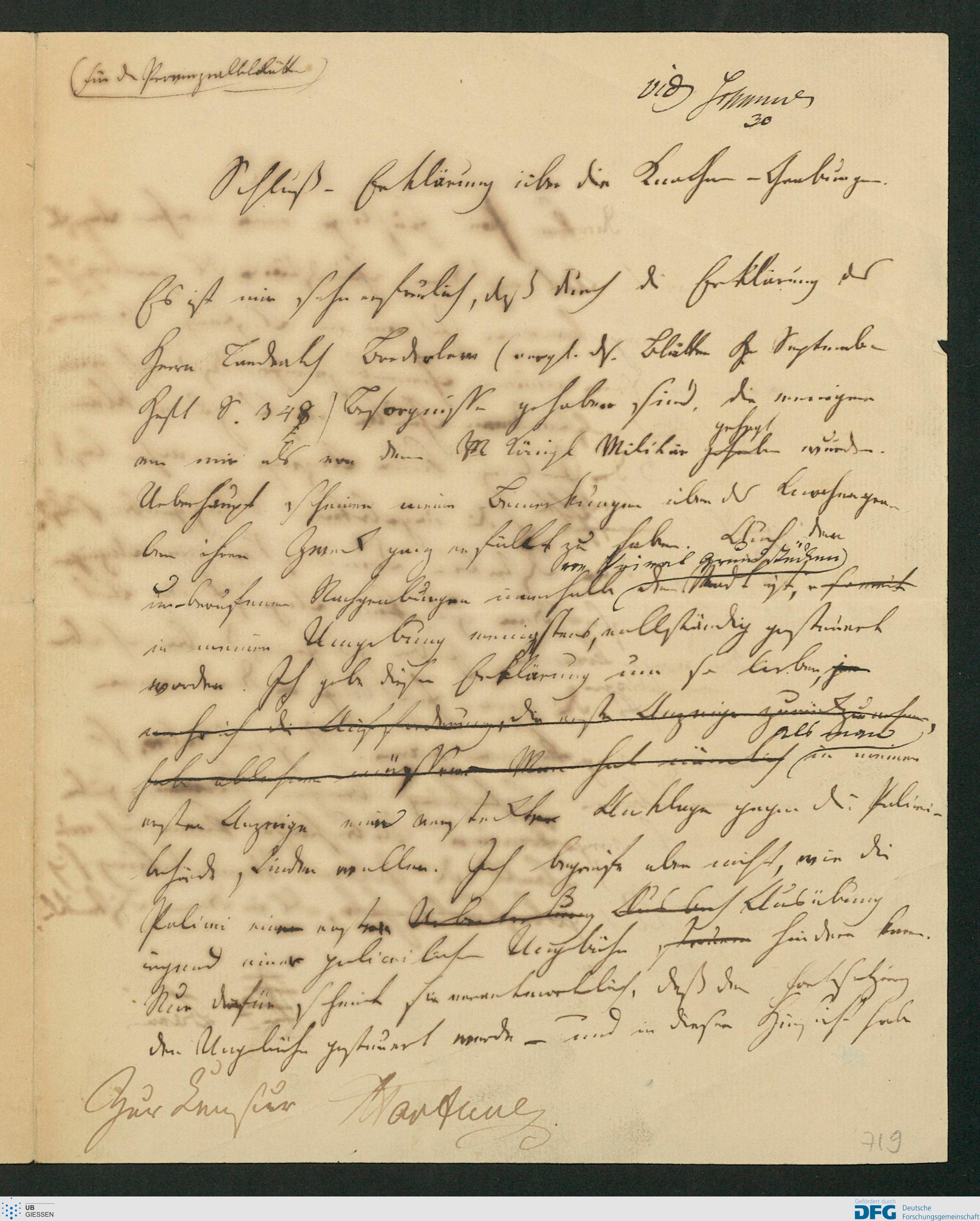 Schluß-Erklärung über die Knochen-Grabungen (Manuskripttitel)